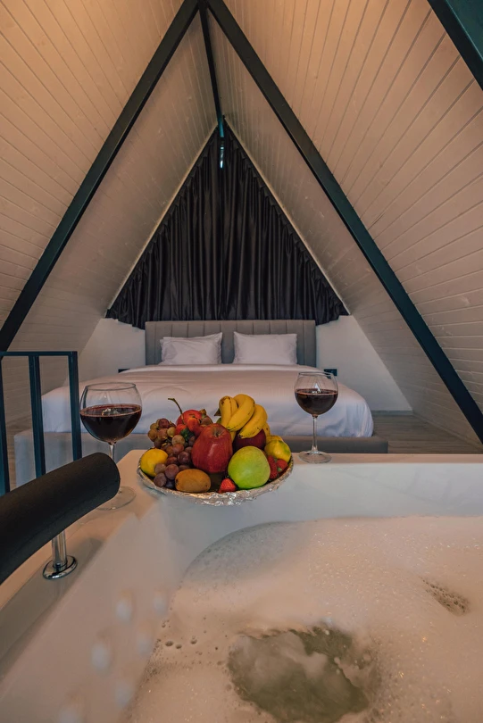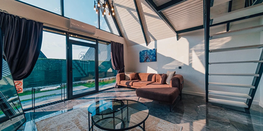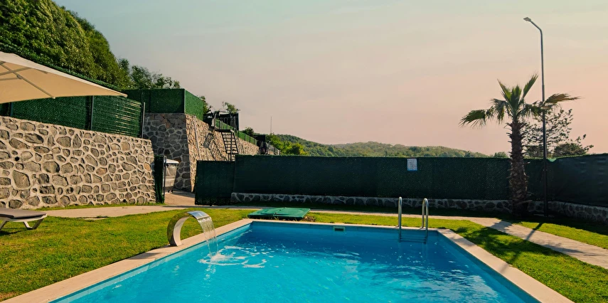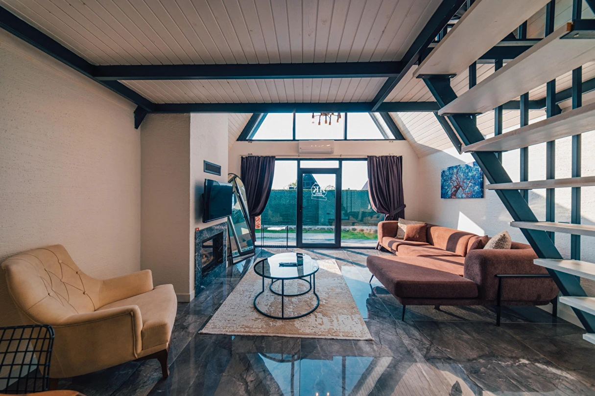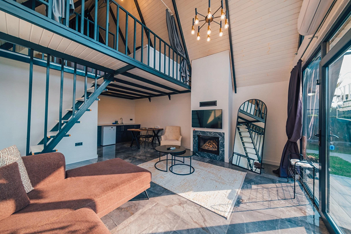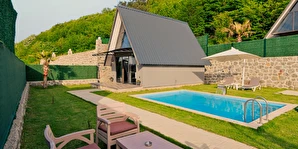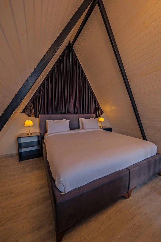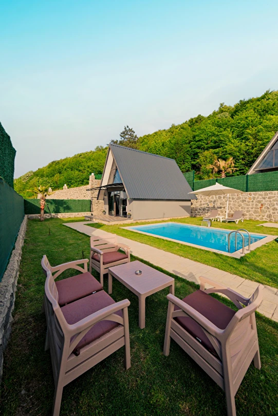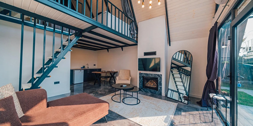 Daha Fazla GösterSapanca Kuka Bungalov Sapanca'nın Hacımercan köyünde bulunmaktadır. Toplam 8 adet bungalov bulunmaktadır. Konforlu ve kaliteli ev dekorasyon eşyalarıyla zevkle döşenmiştir. Misafirlerin eğlenceli vakit geçirmesi için tüm detaylar en ince ayrıntılarına kadar düşünülerek, konuklarının hizmetine sunulmuştur. Hayalinizdeki tatili yaşamanız için özel olarak tasarlanan bu bungalovda konaklarken her şeyin hayal ettiğiniz gibi olduğunu göreceksiniz. Doğanın dinlendirici etkisiyle huzur bulurken ailece keyifli zaman geçireceksiniz.
