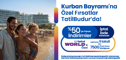 Tatilbudur'da %50'ye varan indirimlerle Efsane Şubat Fırsatları başladı. Üstelik World Kart'a özel 3, 6 ve 9 taksitli alışverişlerinizin ödemesini 4 ay erteleyebilirsiniz.