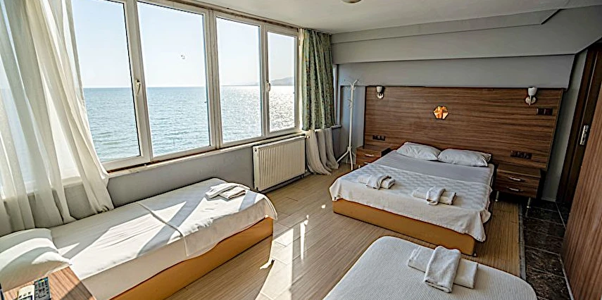 Otel Kutlugün Sahil'in odalarında deniz manzaralı balkon bulunmaktadır. Her odada parke zeminler, minibar, klima ve düz ekran uydu TV vardır. Özel banyolar duş, saç kurutma makinesi ve ücretsiz banyo malzemeleri ile donatılmıştır. Günlük kahvaltı bahçede ve akşam yemeği terasta servis edilir. Öğle yemeğinde alakart menünün tadını çıkarabilirsiniz. Ek ücret karşılığında plaj alanında atıştırmalık ve içecekler sağlanır. Ayrıca barbekü olanaklarından faydalanabilirsiniz