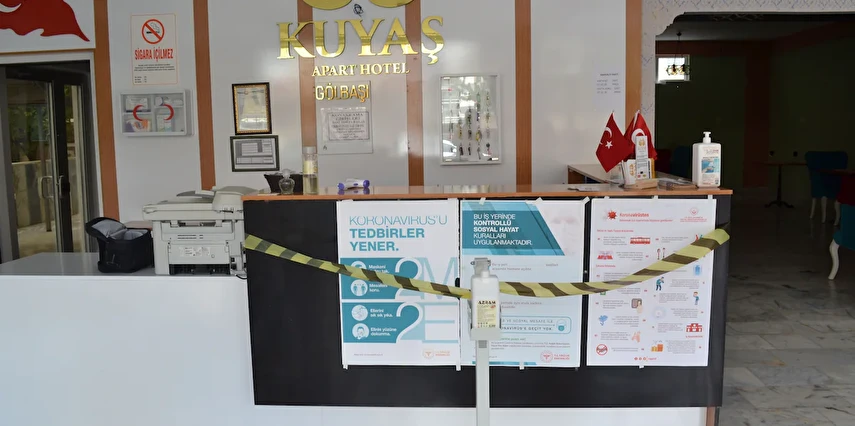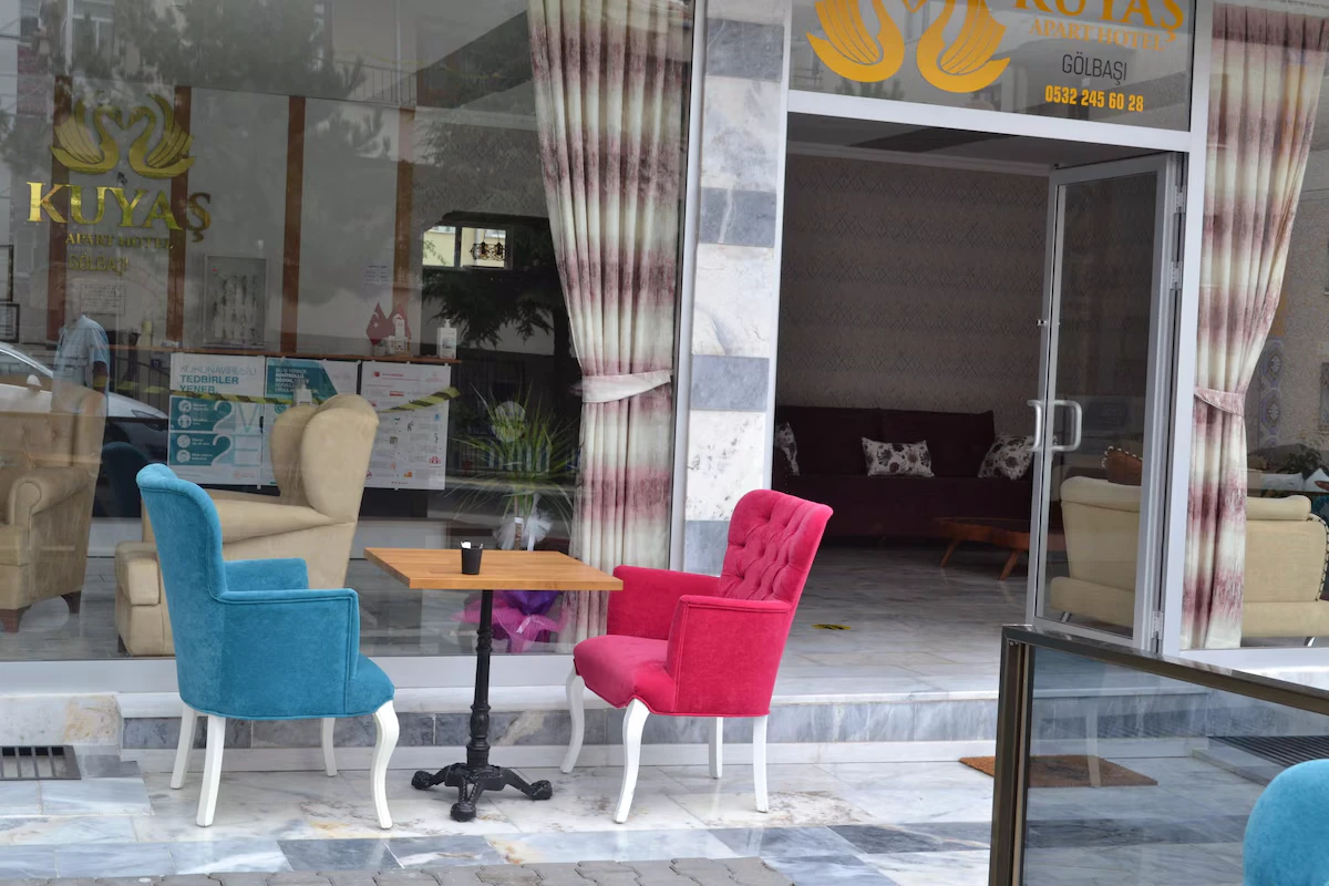 Daha Fazla GösterAnkara Gölbaşı’nda birbirinden konforlu odalarında misafirlerini ağırlayan Kuyaş Apart Hotel, Ankara Üniversitesi Yerleşkesi’ne, Polis Koleji’ne, Mogan Gölü'ne ve Konya yoluna yakınlığıyla misafirlerine ulaşım açısından kolaylık sağlıyor. Kuyaş Apart Hotel, misafirlerine 24 saat resepsiyon ve açık büfe kahvaltı gibi olanaklar sağlıyor.