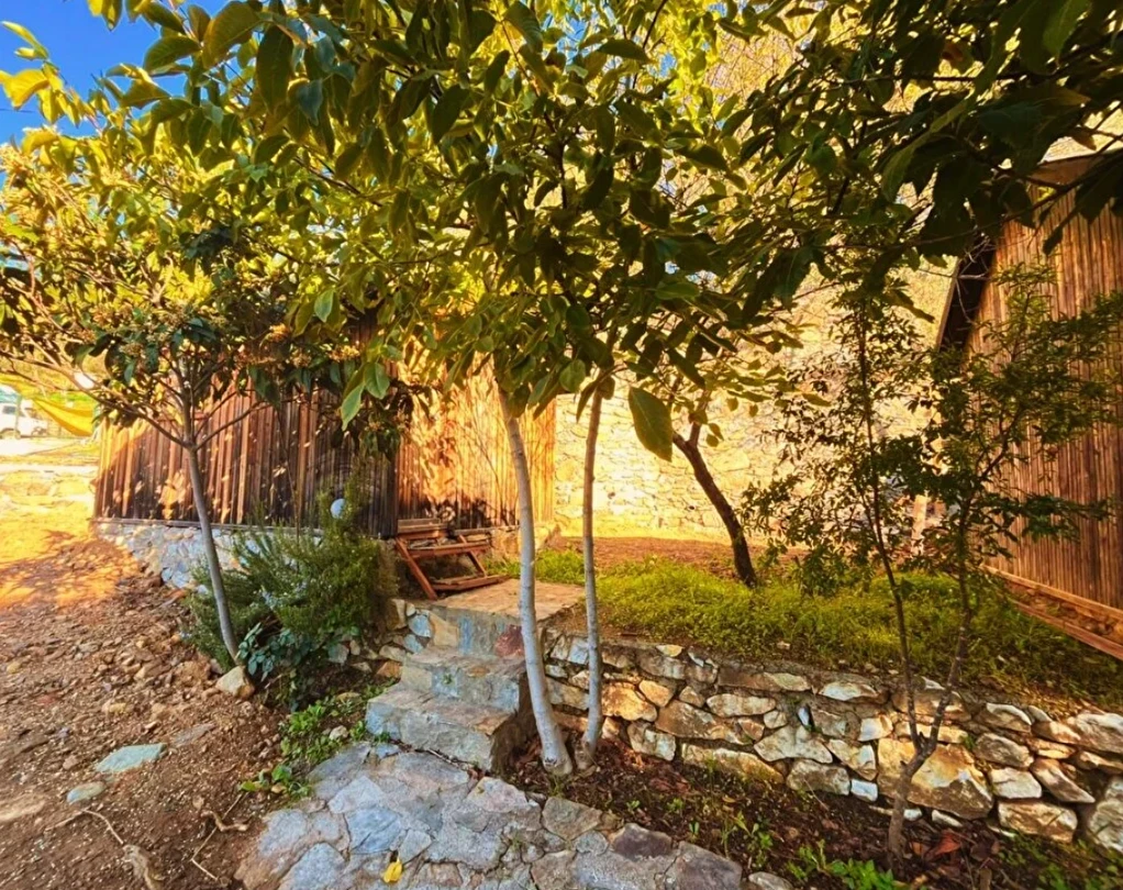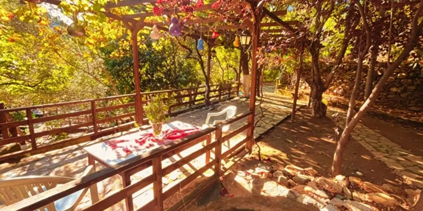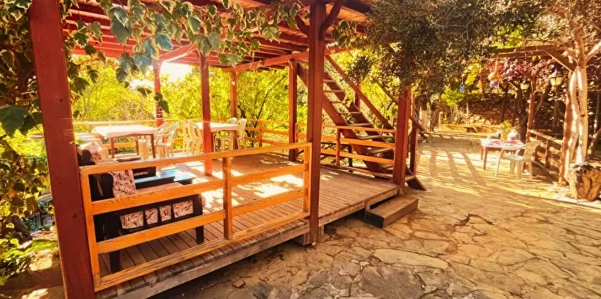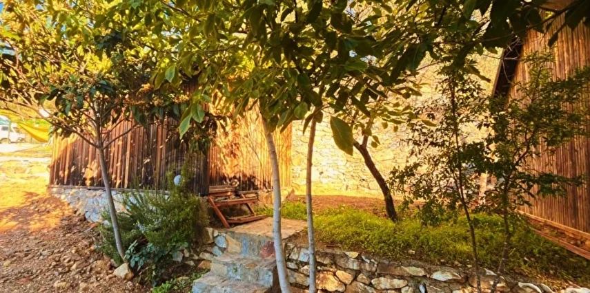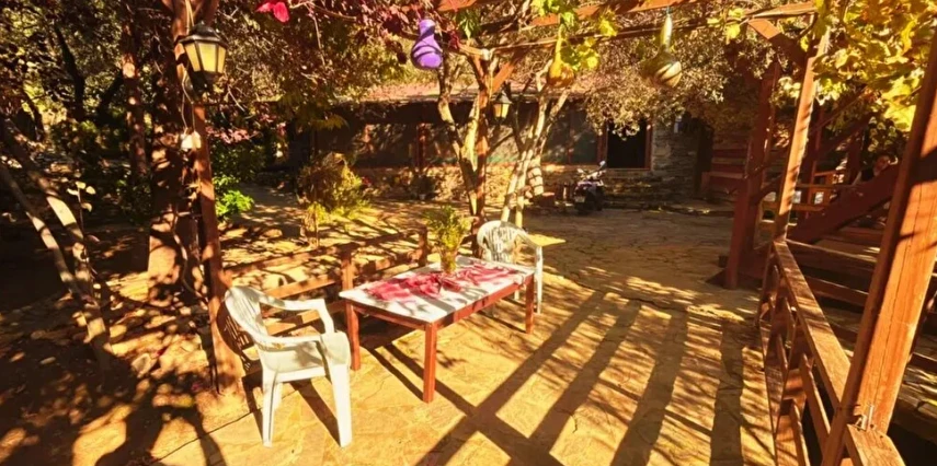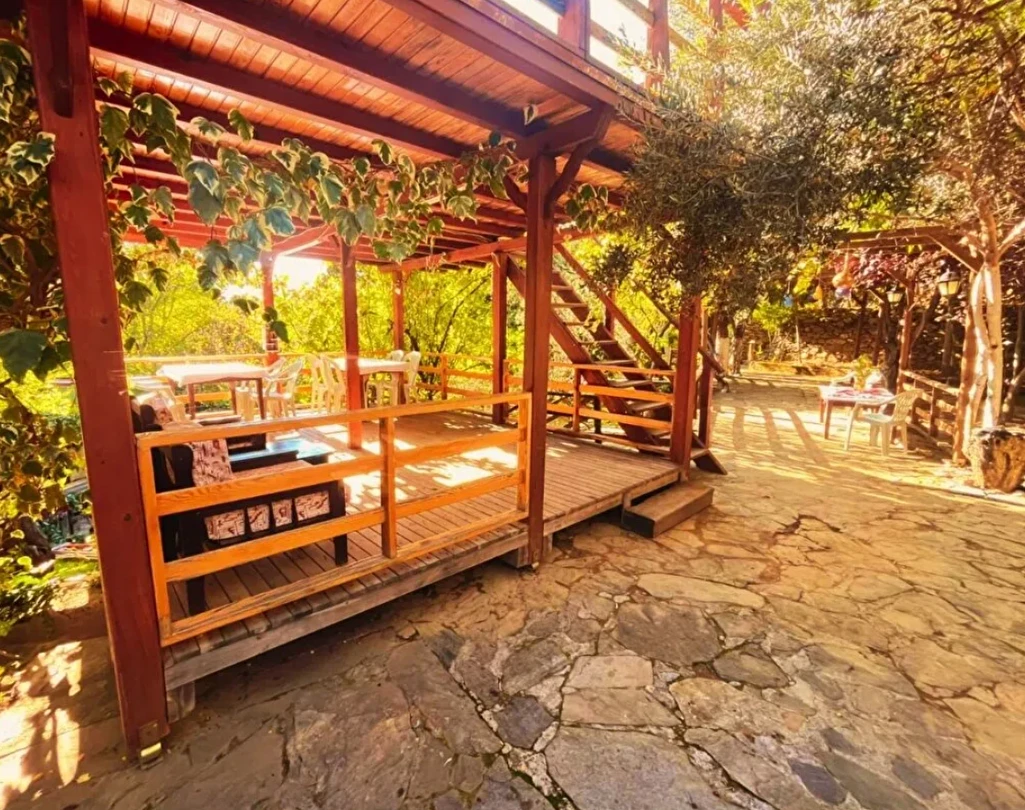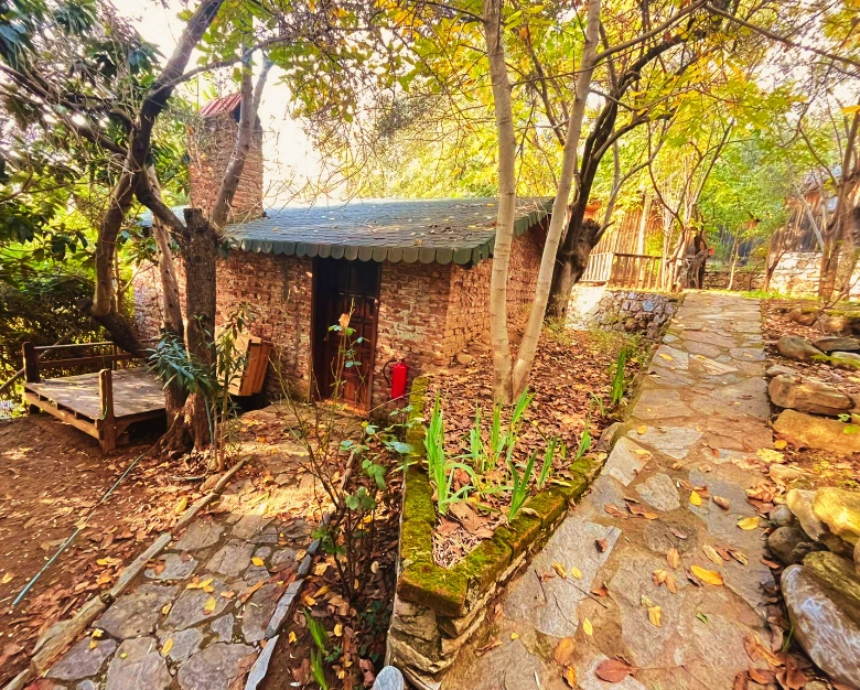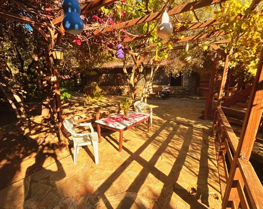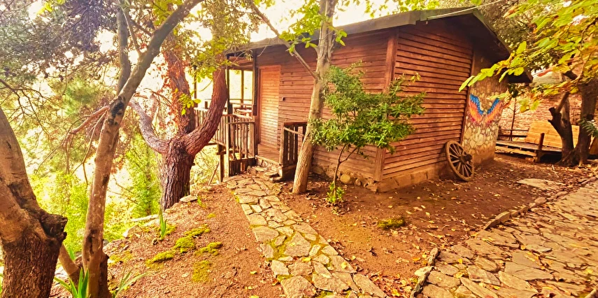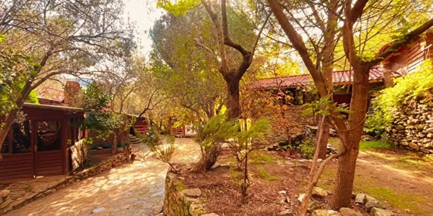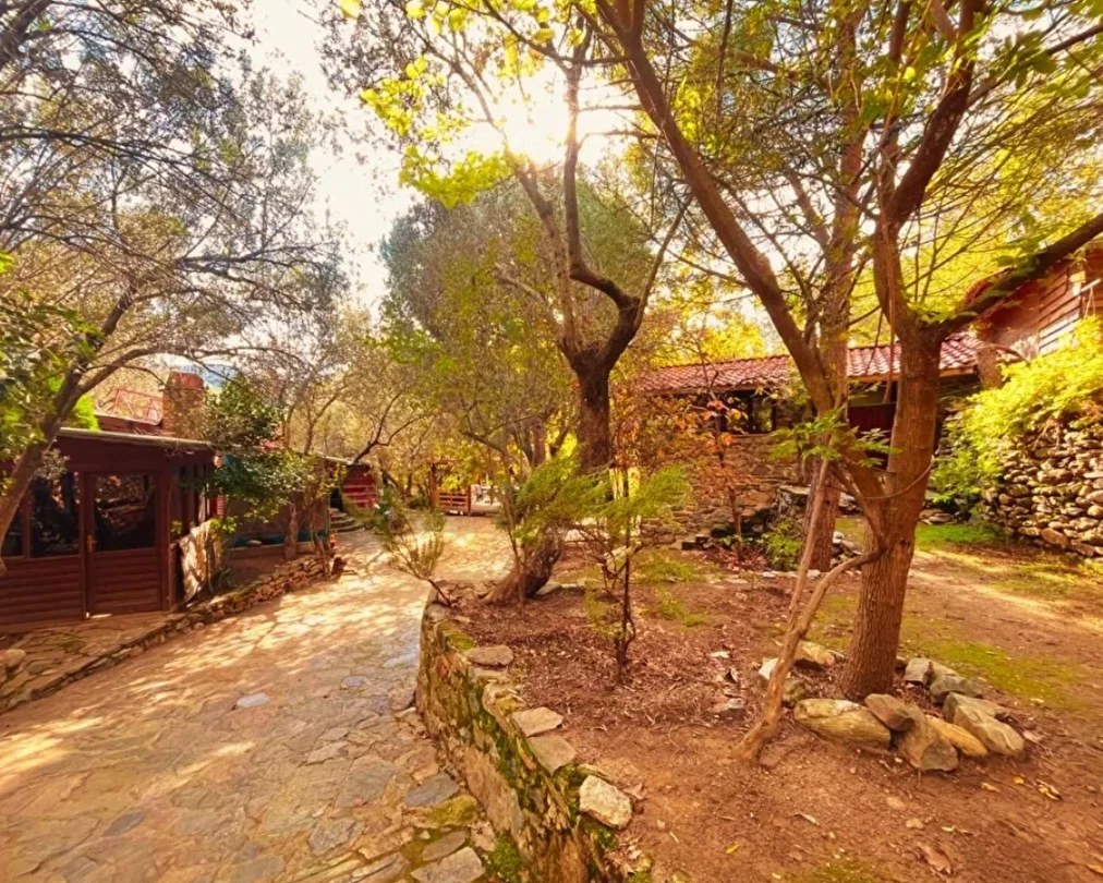 Zeytin, ceviz ve çınar ağaçlarıyla çevrili geniş bahçesi, doğanın sesleri eşliğinde dinlenme alanları ve huzurlu atmosferi ile misafirlerine benzersiz bir deneyim sunar.