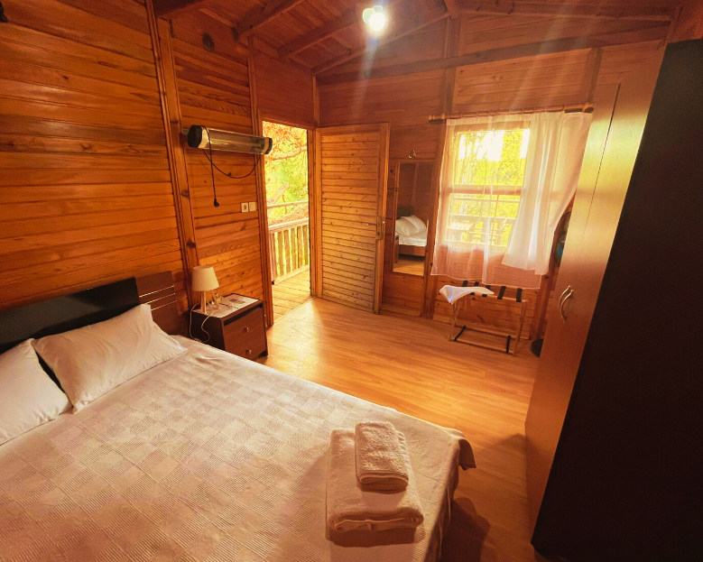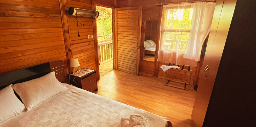 Bungalov ve taş mimariden oluşan konaklama birimleri, doğal malzemelerle tasarlanmış olup doğayla uyumlu bir konfor sunar. Klima kullanılmayan odalarda, Kazdağları’nın temiz havası ve doğal serinliği ön plana çıkar.