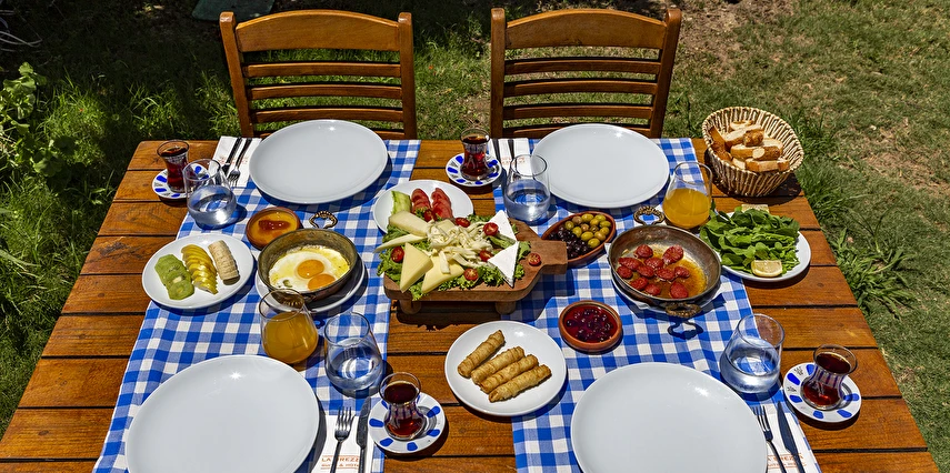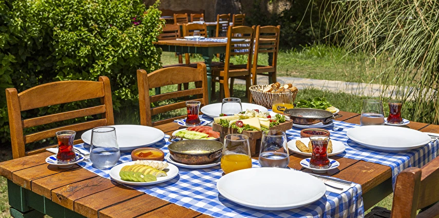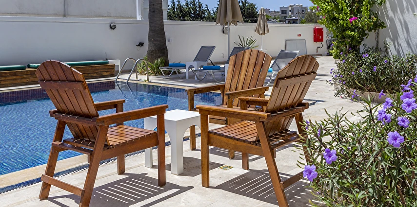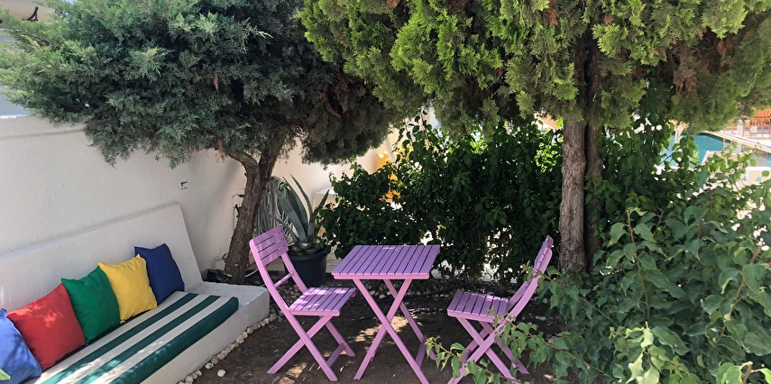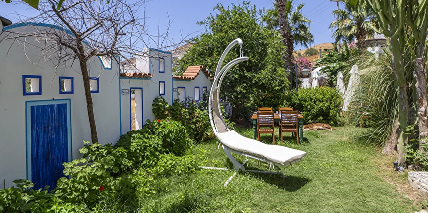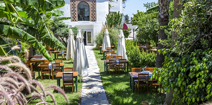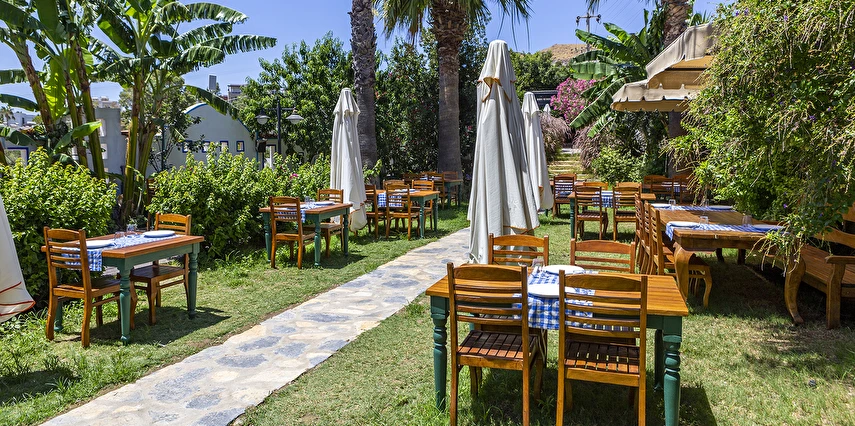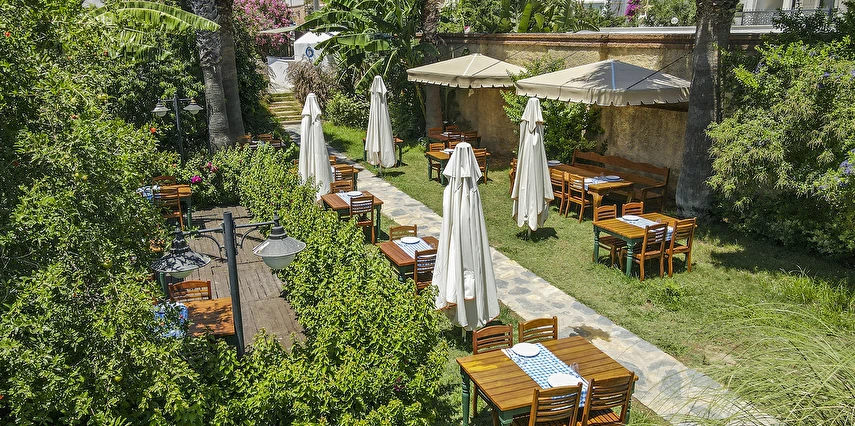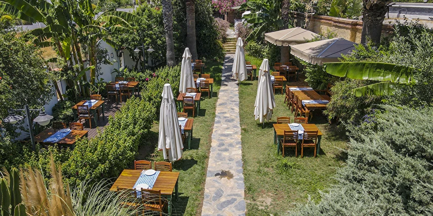 Tesisimizde; yeşillikler içinde, begonvillerin sardığı, muz ağaçlarının gölgesinde, kuş sesleriyle huzur bulacağınız 1500 m²'lik tropik bir bahçe içerisinde büyük havuzu, çocuk havuzu, bar ve restoran bulunmaktadır.