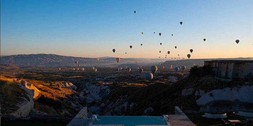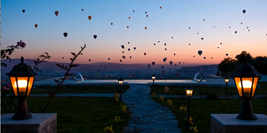Kapadokya’nın en özel aktivitelerinden biri olan sıcak hava balonu turlarının iniş noktası otelimizin hemen yanındadır. Bu sayede, gün doğumunda vadi manzarası eşliğinde gökyüzünü süsleyen balonları izleyebilir; dilerseniz resepsiyonumuzdan balon turları ve diğer bölge aktiviteleri hakkında bilgi ve rezervasyon desteği alabilirsiniz.
