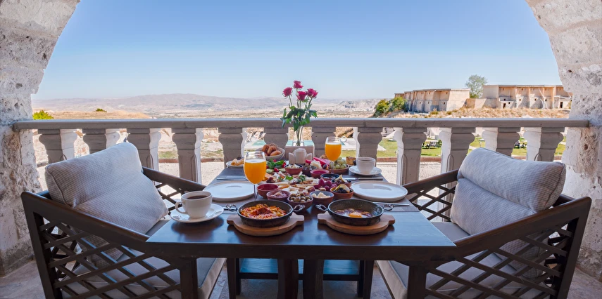 Geleneksel serpme kahvaltı ile güne başlayabileceğiniz otelimizde, Kapadokya’nın eşsiz doğasıyla bütünleşmiş bir atmosfer sizleri bekliyor.