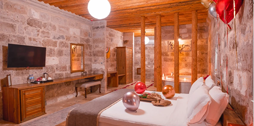 Kapadokya’nın büyüleyici atmosferinde konumlanan La Fairy Cappadocia, bölgenin doğal dokusuna uyumlu olarak özgün taş mimarisiyle inşa edilmiştir. Panoramik vadi manzarasına hakim konumuyla, misafirlerine doğayla iç içe huzurlu ve unutulmaz bir konaklama deneyimi sunmaktadır.