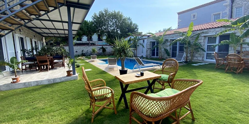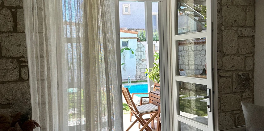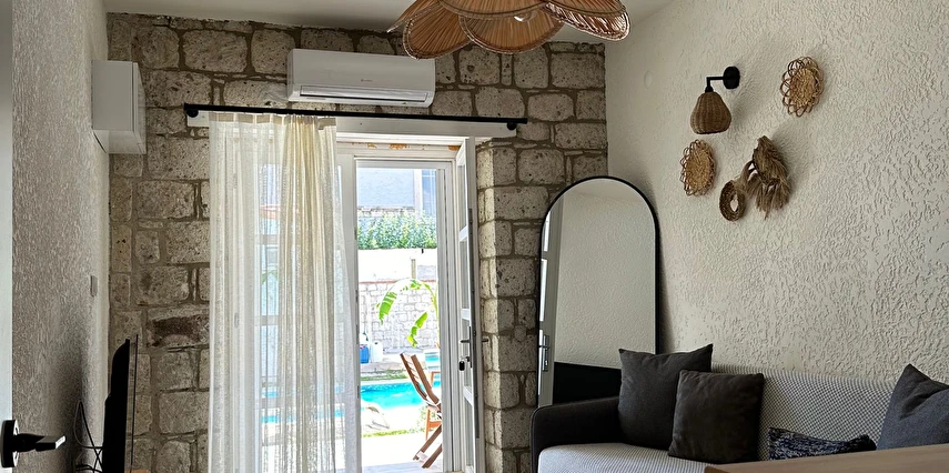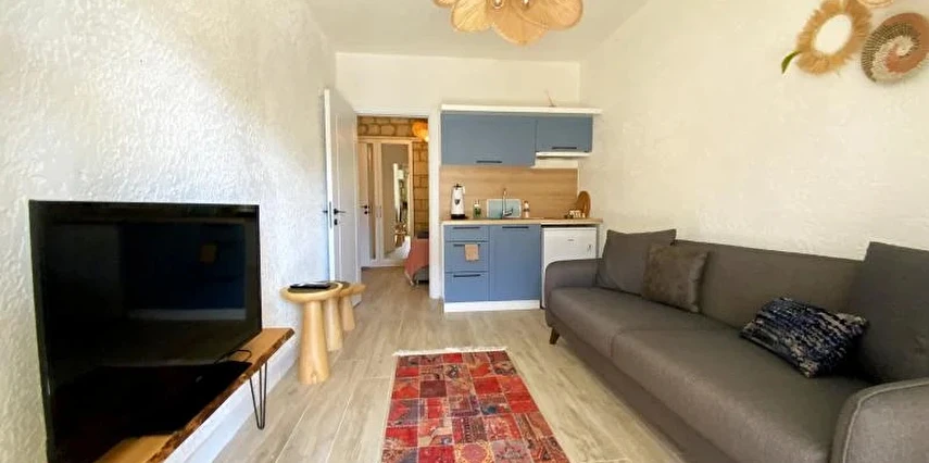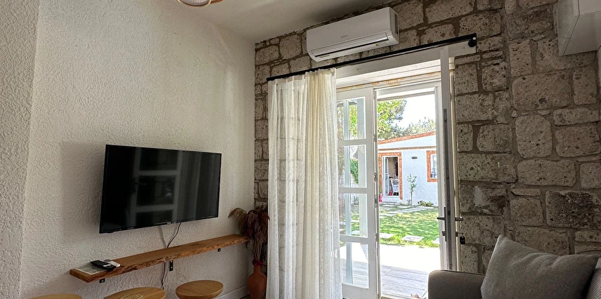 Alaçatı'nın göbeğinde 1+1 oda konseptinde eviniz. Konuklarımıza 1+1 odalarımız ve geniş bahçemizle Alaçatı'da ev konforunu sunmaktayız. Geniş yatak odası ve içerisinde Amerikan mutfağı bulunan oturma alanıyla misafirlerimize keyifli bir deneyim sunmaktayız.