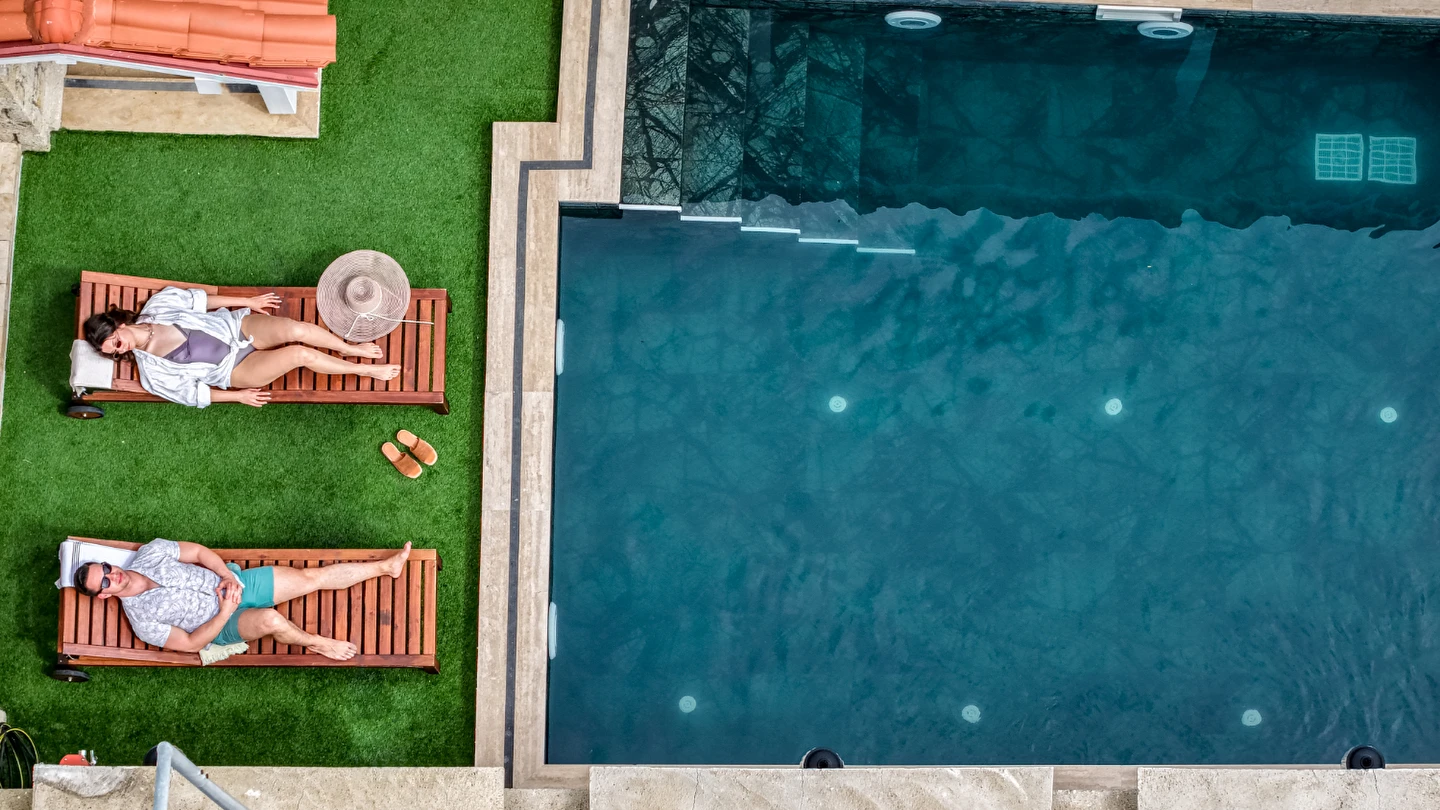 Havuzumuz, 33 m²'lik geniş alanda rahatlayıp dinlenebileceğiniz bir ortam sunuyor. Şezlong alanlarımız sayesinde güneşin tadını çıkarabilir, rahatça dinlenebilirsiniz. Ayrıca, şelalesiyle hem görsel hem de sesli bir rahatlama deneyimi yaşamanızı sağlıyoruz. Hem serinlemek hem de keyifli bir gün geçirmek için ideal bir seçenek olan havuzumuz, sizi bekliyor!