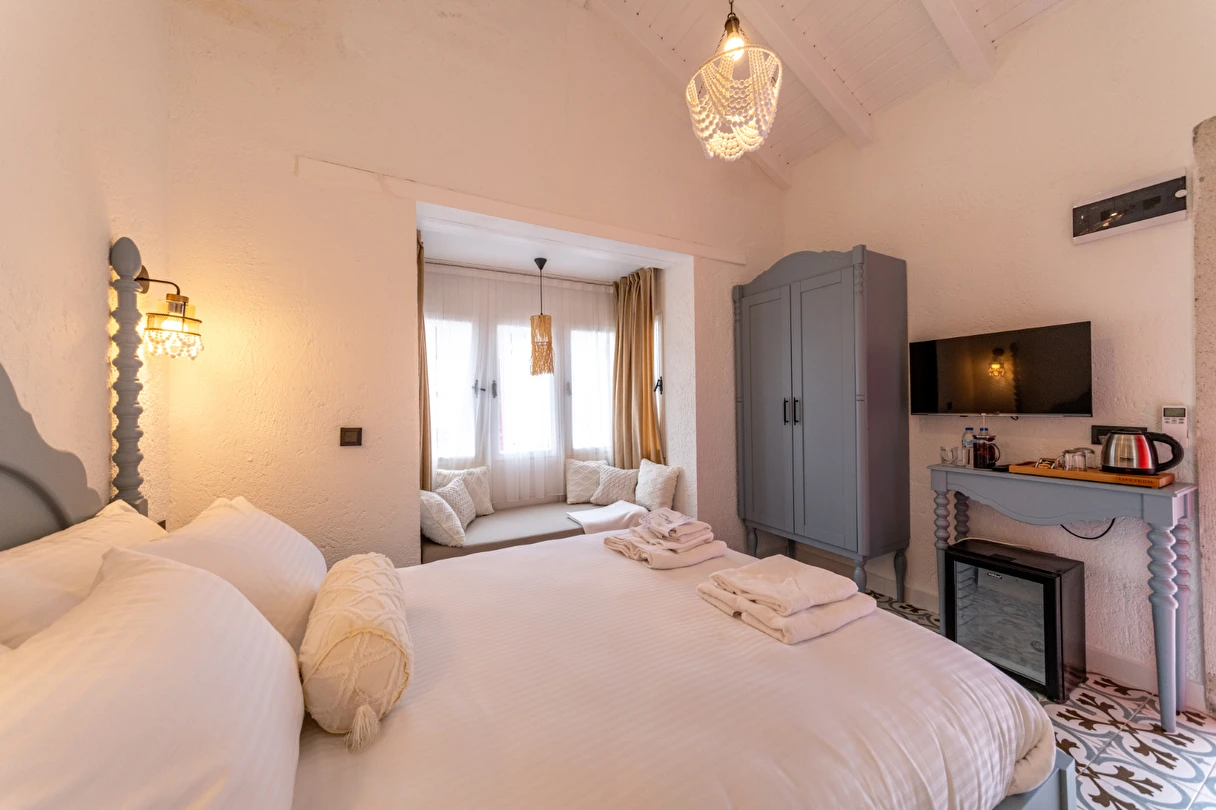 Nestled in the heart of Alaçatı’s vibrant district, La Rubina Alaçatı offers a unique blend of boutique luxury and authentic charm. With only 10 thoughtfully designed rooms, our hotel provides an intimate and personalized experience for every guest. Whether you're exploring the cobblestone streets or relaxing in our serene courtyard, La Rubina Alaçatı invites you to enjoy the laid-back elegance that defines Alaçatı.