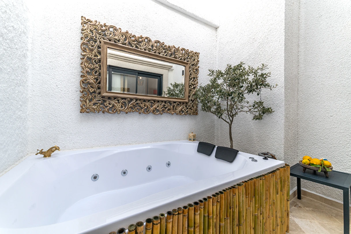 Evliliğinizin en özel anlarını taçlandırmak için tasarlanan jakuzili balayı odamız, çiftlere hem konfor hem de romantizmi bir arada sunuyor.