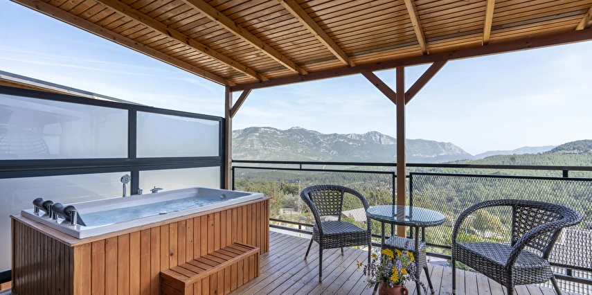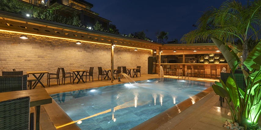 Antalya'nın eşsiz güzelliklerine sahip Olimpos bölgesinde, doğayla iç içe huzurlu bir tatil deneyimi sunan bungalov tesisimize hoş geldiniz. 15 adet dubleks bungalovumuz, her biri ortalama 70m2 büyüklüğünde olup modern tasarımları ve konforlu yaşam alanlarıyla dikkat çekiyor.Her bungalovda bulunan jakuzi, özel mutfak, banyo ve tuvalet ile konuklarımıza evlerindeki rahatlığı sunarken, aynı zamanda muhteşem doğa manzarasıyla unutulmaz bir konaklama deneyimi yaşatıyoruz. Tatilinizi daha da keyifli hale getirmek için tesisimizde çeşitli aktiviteler ve hizmetler de sunuyoruz.Konaklama süresince istediğiniz zaman dinlenmek ve keyif yapmak için jakuzi imkanından yararlanabilir, özel mutfağınızda lezzetli yemekler hazırlayabilirsiniz. Ayrıca tesisimizdeki restoranımızda yerel ve uluslararası lezzetleri deneyebilir, ferahlatıcı içeceklerle gününüzü taçlandırabilirsiniz.
