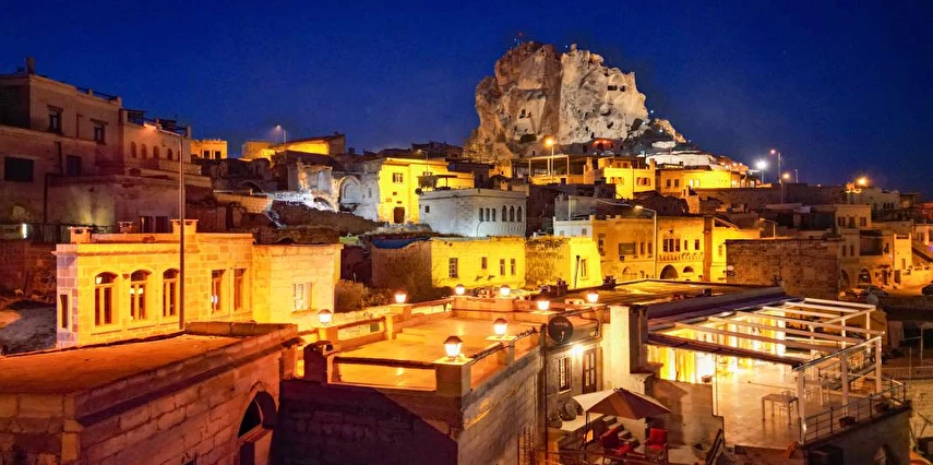 Ortahisar Kalesi manzaralı, yetişkinlere özel butik mağara oteli. Sessiz, seçkin ve kişiselleştirilmiş konaklama deneyimi Kapadokya'da.