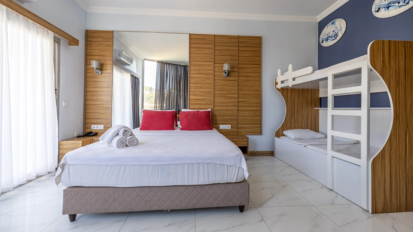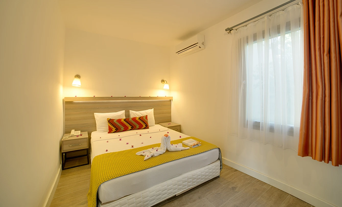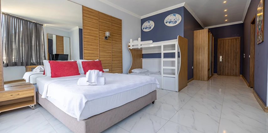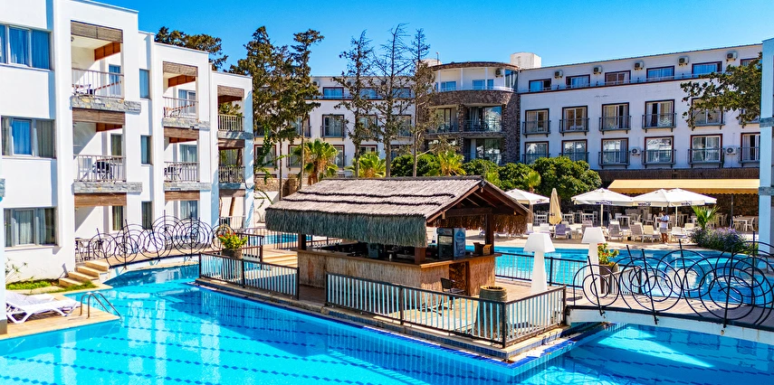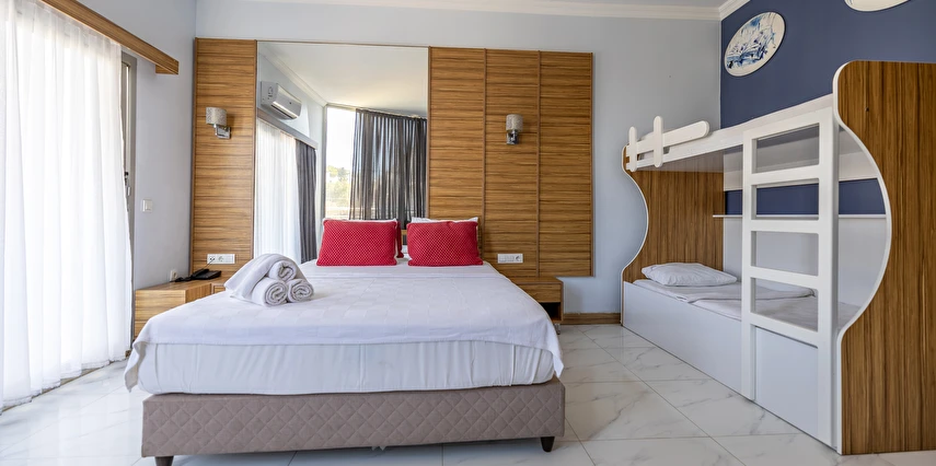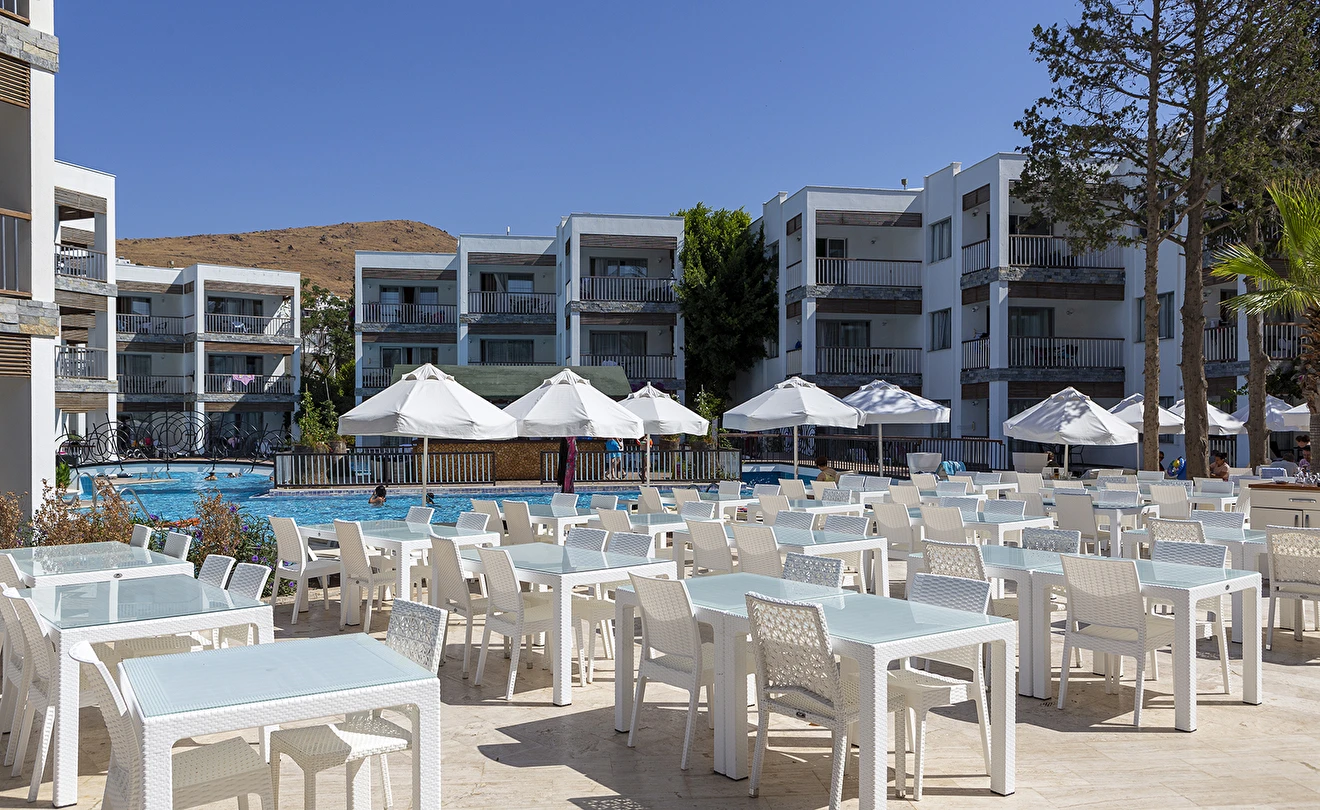 01.06-15.09 tarihleri arasında hizmet veren A ‘la Carte Restoranlarında en az 6 gece kalan misafirler, bir gün öncesinden rezervasyon yaptırmak şartıyla 1 defa ücretsizdir. Şişe olarak servis edilen tüm içecekler ve tüm yabancı içecekler, kokteyller, taze sıkılmış meyve suları ücretlidir. A’la carte restoranlar haftanın bir günü kapalıdır.