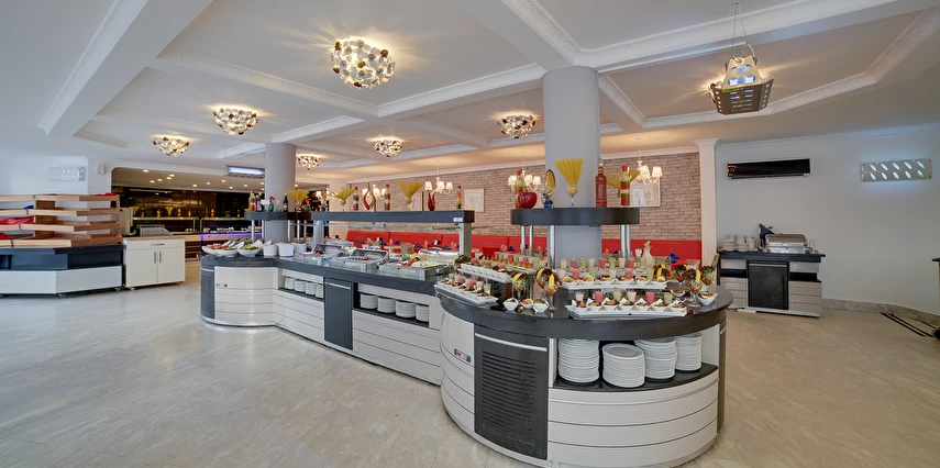 Sabah kahvaltısı, geç kahvaltı, öğle yemeği ve akşam yemeği açık büfe olup, tesisin belirlemiş olduğu markalar dahilinde tüm yerli alkollü ve alkolsüz içecekler 10:00 ile 23:00 saatleri arasında ücretsizdir. Tüm yabancı içecekler, yabancı içecekler ile yapılan tüm kokteyller, tüm şişe ve kapalı içecekler, taze sıkılmış meyve suları, doğum günü ve özel talep edilmiş pastalar ücretlidir.
