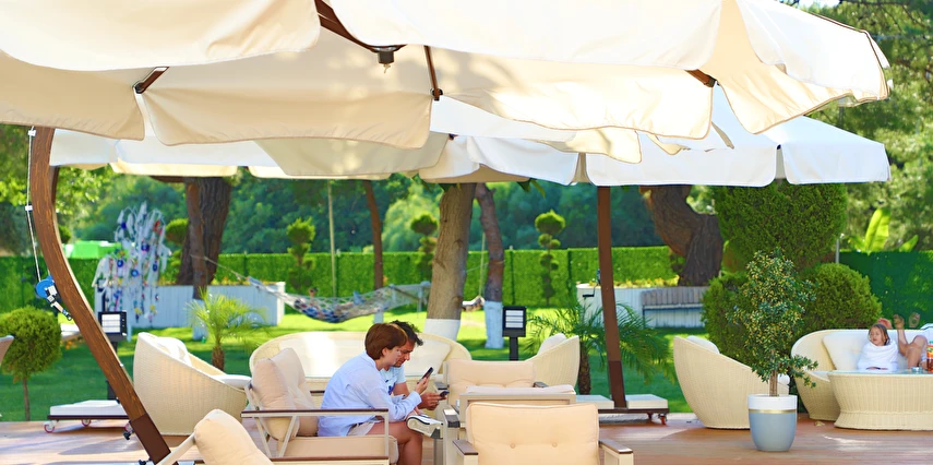 Tesis Lara Beach Park ile anlaşmalıdır. Giriş , Şezlong ve Şemsiye ücretsiz sunulmaktadır. Shuttle servis vardır. Plajda herhangi bir ücretsiz yiyecek içecek servisi bulunmamaktadır. Dileyen misafirler plaj işletmesinden ücretli olarak faydalanılabilir.