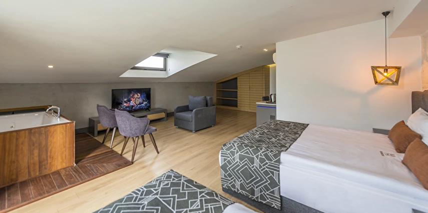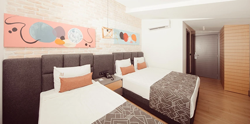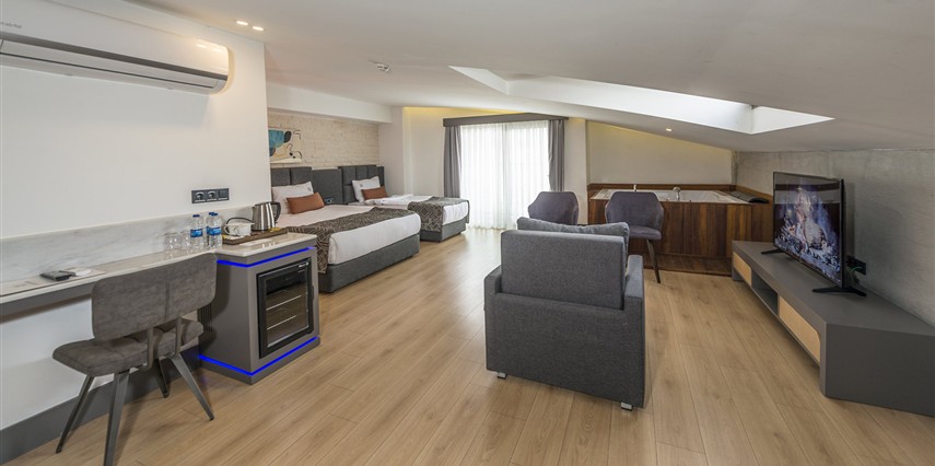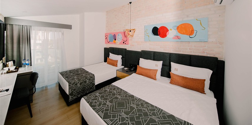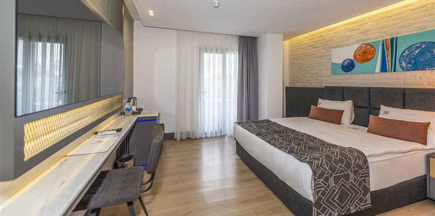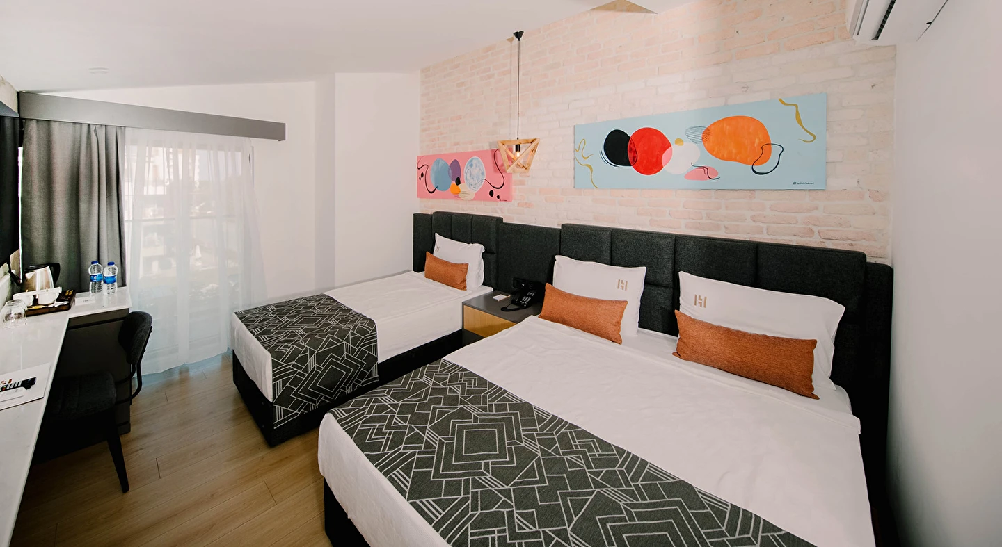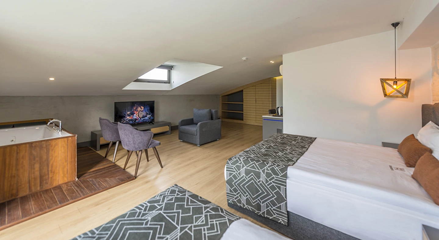 Premium Donanım: Yüksek hızlı ücretsiz Wi-Fi, Smart TV, minibar, dijital kasa ve özel tasarım banyo bukletleri.