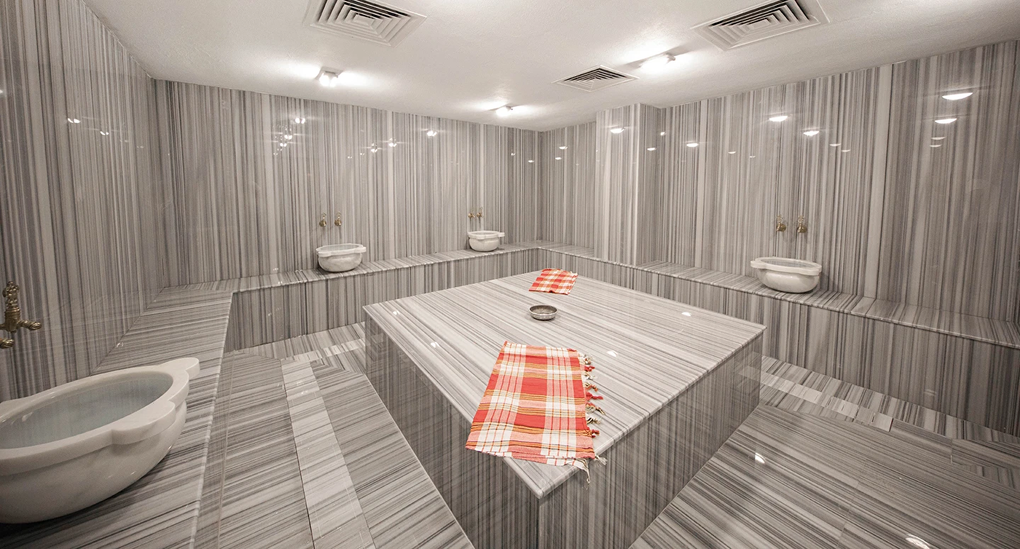 Geleneksel ve Modern Terapiler: Türk hamamı, sauna ve buhar odasıyla toksinlerden arının.