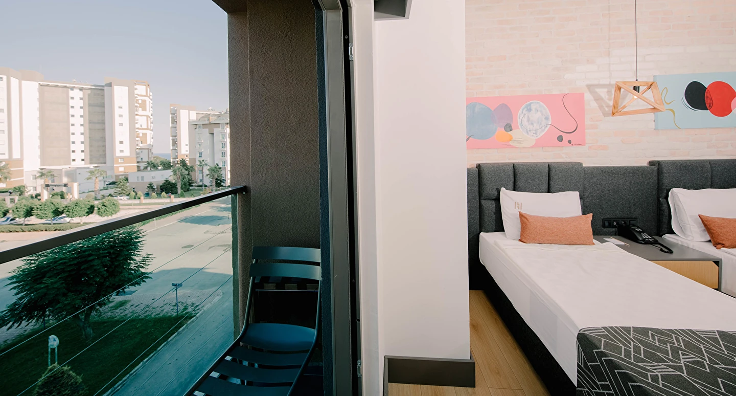 Deniz ve Şehir Manzarası: Akdeniz’in turkuaz sularına veya şehrin ışıltılarına açılan pencereler.
