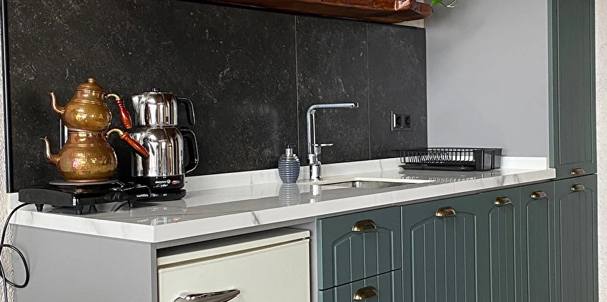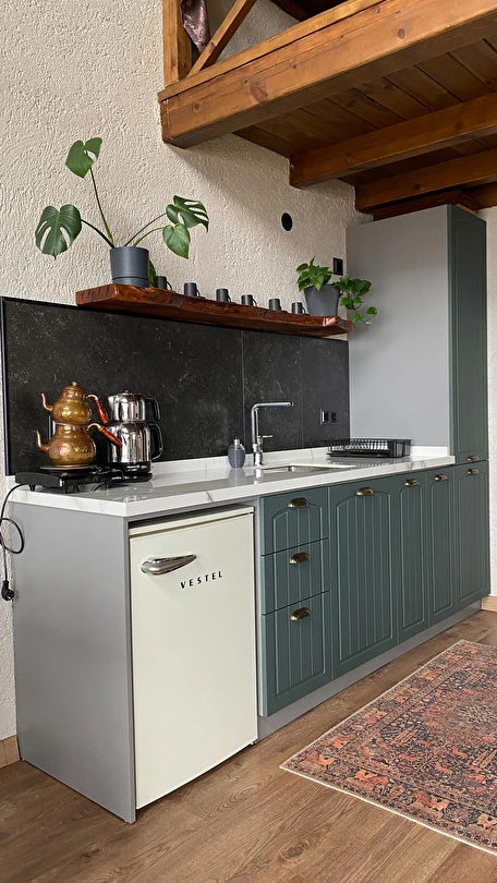 ~Mutfağımız donanımlıdır. ~Elektrikli 2 li ocak,mini buzdolabı, mutfakta bulunmaktadır. ~Çay,bitki çayı,türk kahvesi,kahve makineleri mutfakta sınırsız bulunmaktadır. ~Verandamızda barbekü bulunmaktadır.