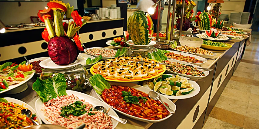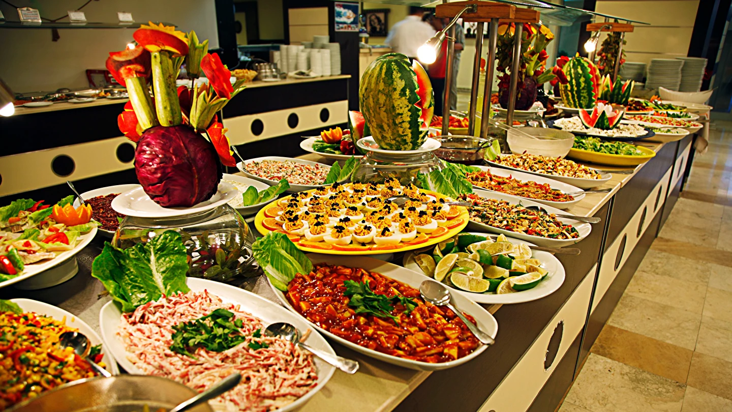 Sabah kahvaltısı öğle yemeği ve akşam yemekleri açık büfe olup tesisin belirlemiş olduğu markalar dahilinde tüm yerli alkollü ve alkolsüz içecekler 10:00 ile 23:00 arasında ücretsizdir.