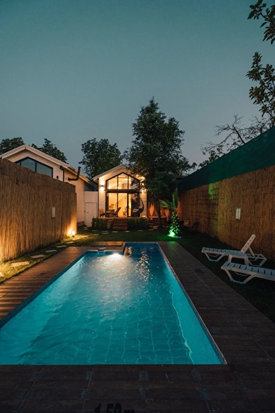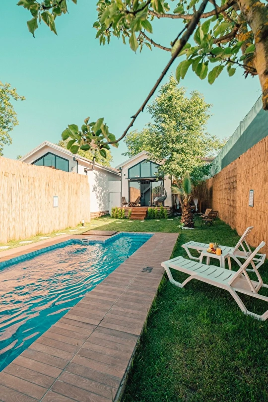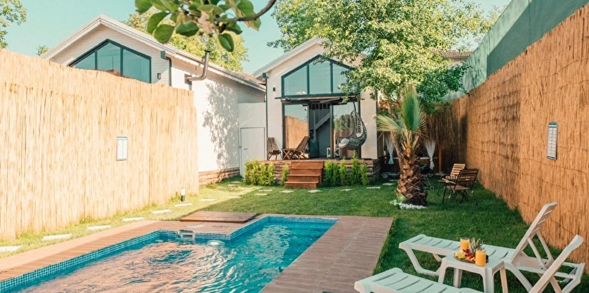 Tamamen size özel korunaklı bahçe içerisinde sıcak havuz ve jakuzili