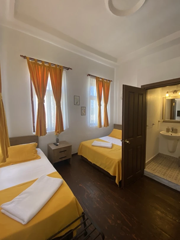 Ege Rum mimarisinin tüm özelliklerini taşıyan otel, aslına uygun bir şekilde tarihi dokusu korunarak restore edilmiştir. Denize 20 metre mesafede, kıyı restaurant ve cafelerine komşu, Cunda ve Sarımsaklı’ya araçla 10 dakika uzaklıktadır.