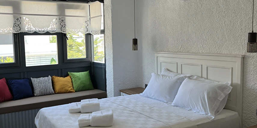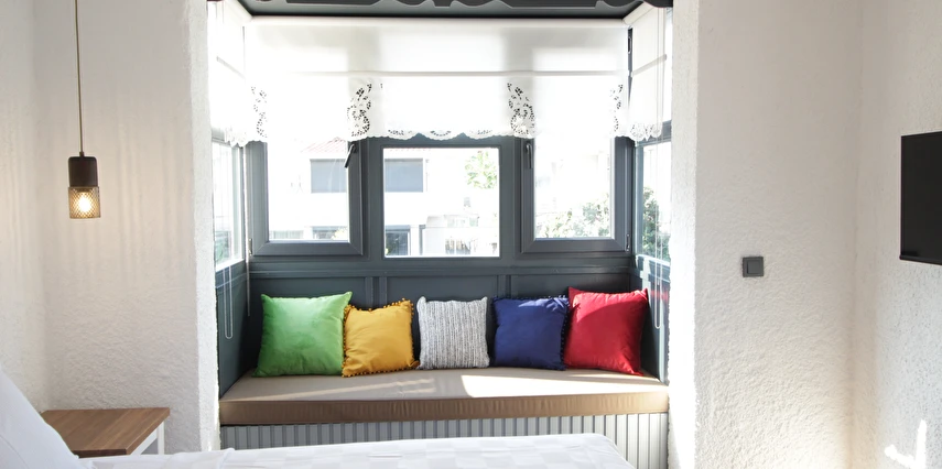 Arnavut kaldırımlı dar sokakları, sizi denize ulaştıran hafif esintili havası, taş evlerden sarkan begonvilleri, sakız ağaçları, sardunyaları, her derde deva otları, yemekleri ve sohbetleri, gündüzü ayrı, gecesi ayrı güzel Alaçatı’da da kaliteli ve keyifli bir tatil deneyimi sunmak adına Haziran 2023 yılında hizmete açıldık.