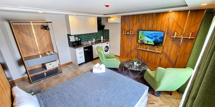 ‘’Güzel Evimde Kalalım!’’ adı ve sloganıyla Antalya’da yepyeni bir apart otel anlayışını benimseyen Let’stay Sweet Home Mint, yeşil ve mavinin birleştiği Eski Lara Yolu’na yürüme mesafesinde yer almaktadır. Apart otelimiz, alışveriş severlerin uğrak yeri Terra City Avm’ye 3 dakika yürüme mesafesindedir. Apart otelimizin tüm odaları modern bir çizgi ve konseptte tasarlanmış olup ücretsiz kablosuz fiber internet erişimiyle donatılmıştır. Apart otelimiz konum itibariyle dünya mutfağı kategorisinde de hizmet veren pek çok sayıda restoran ve bara yürüme mesafesindedir. Şehrin farklı bölgelerine gitmek isteyen misafirler için ise otobüs durağına uzaklığı 300 metredir. Lüks ve konforu birleştiren keyifli ve huzurlu bir konaklama sunan Let’stay Sweet Home Mint sizlere şehrin merkezinde kendinizi evinizde hissedeceğiniz bir ortam yaratıyor.
