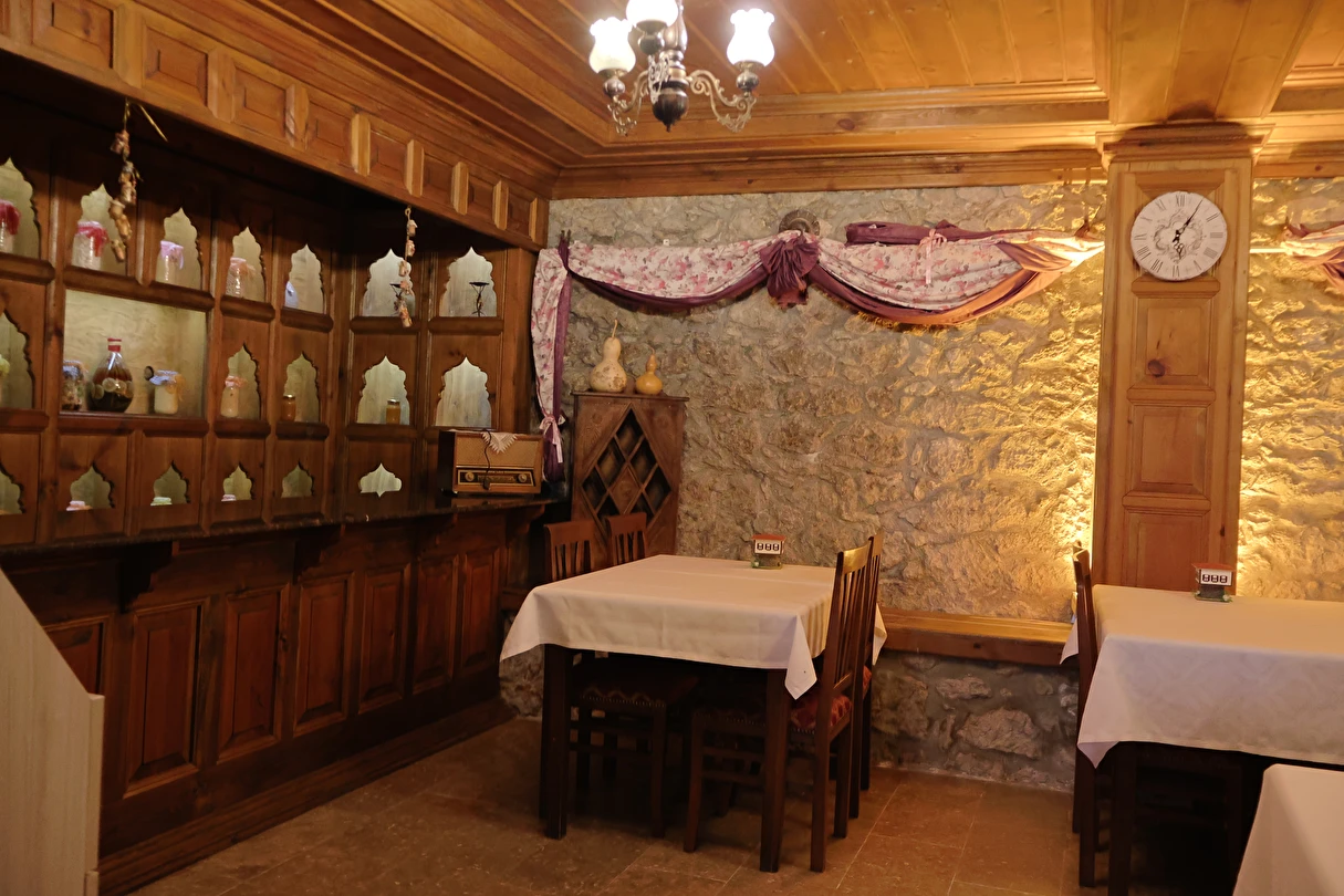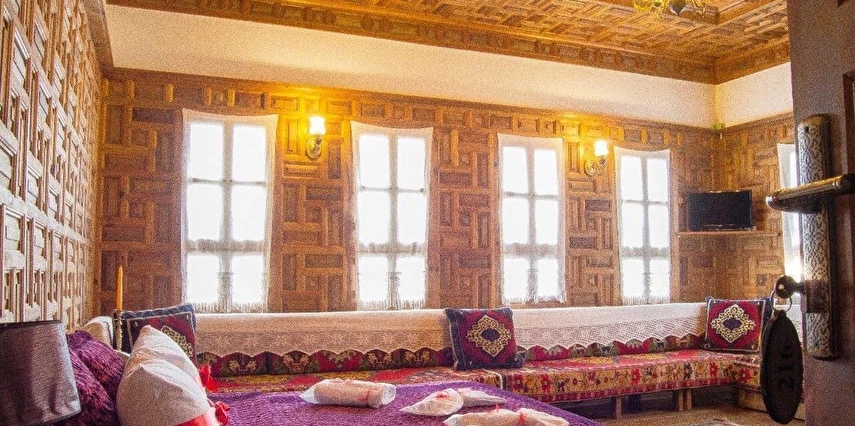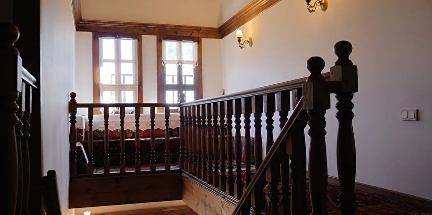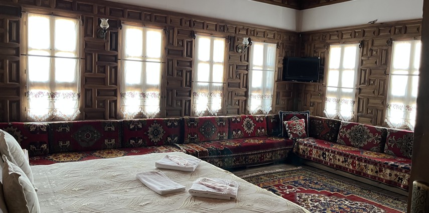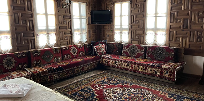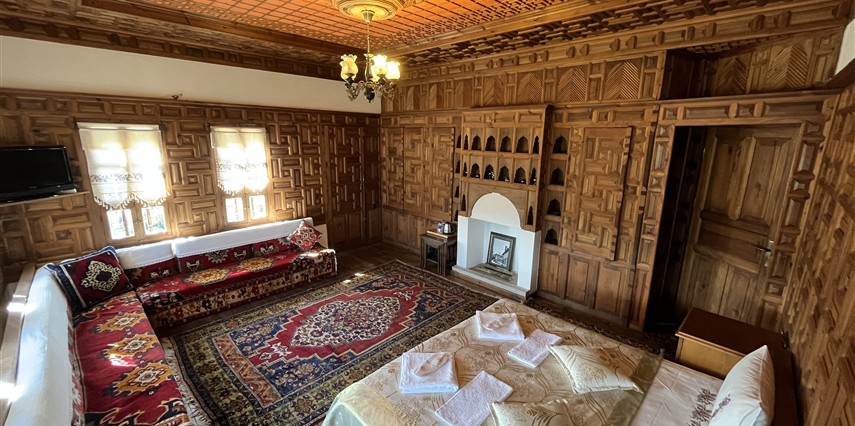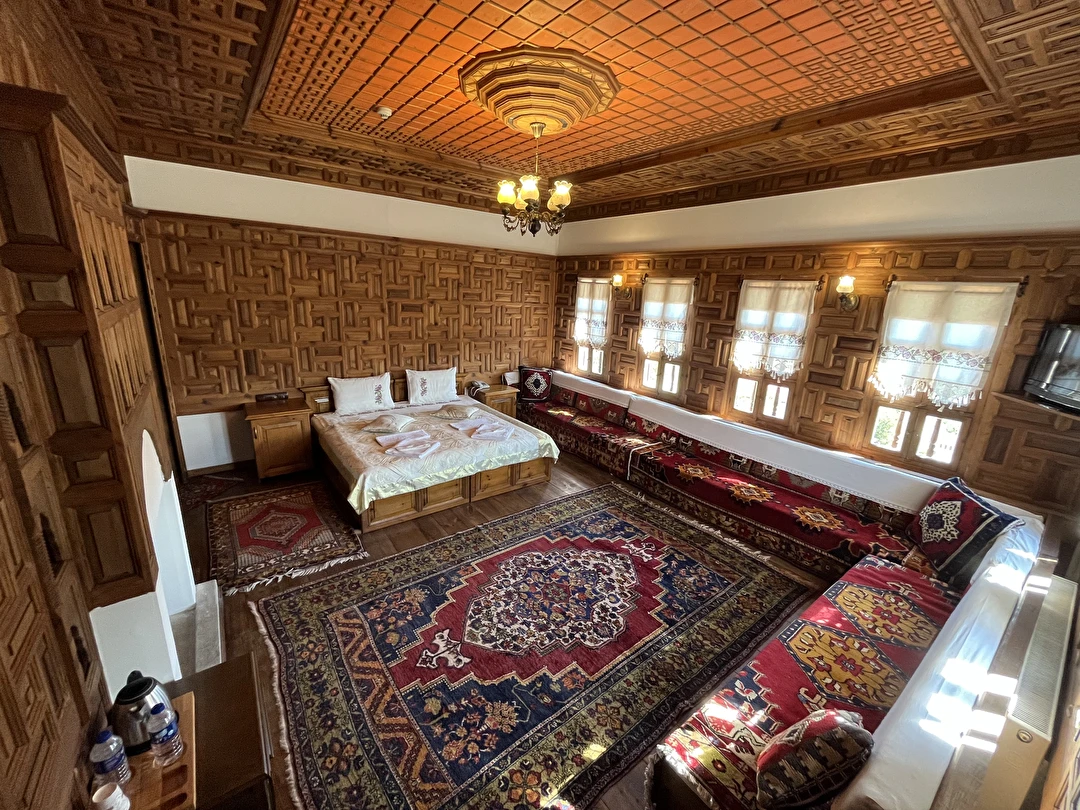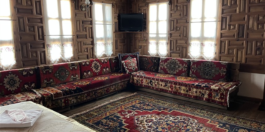 Otelimizin tamamının tabanı el yapımı yağcı bedir halılarıyla döşenmiş, tavanlarıda mükemmel Safranbolu ahşap işçiliğiyle dekore edilmiştir.