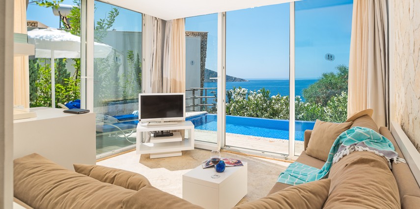 Tesis plaja 7 dakikalık yürüme mesafesinde yer almaktadır. Geniş süitlerin tümü klimalı olup bir güneşlenme alanı ve özel havuz sunar. Ücretsiz Wi-Fi mevcuttur. Likya Hotel'in tüm süitleri 2 katlıdır. Zemin katta tavandan tabana pencereler ile bir yaşam alanı, DVD oynatılı bir plazma TV, minibar, espresso makinesi ve iPod yuvası bulunmaktadır. Üst katta ise kral yataklı bir yatak odası ve panoramik deniz manzaralı özel teras vardır.