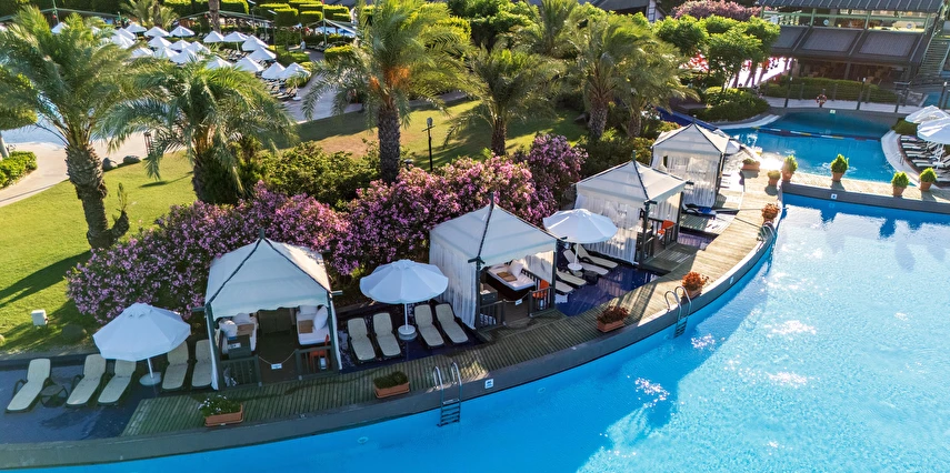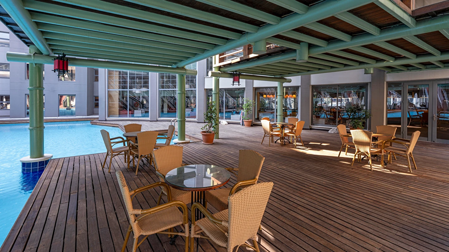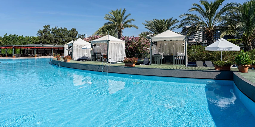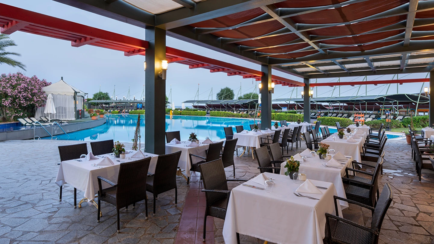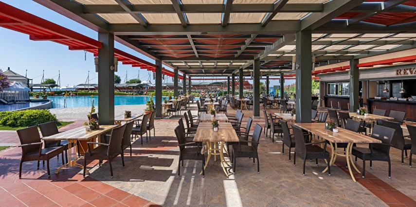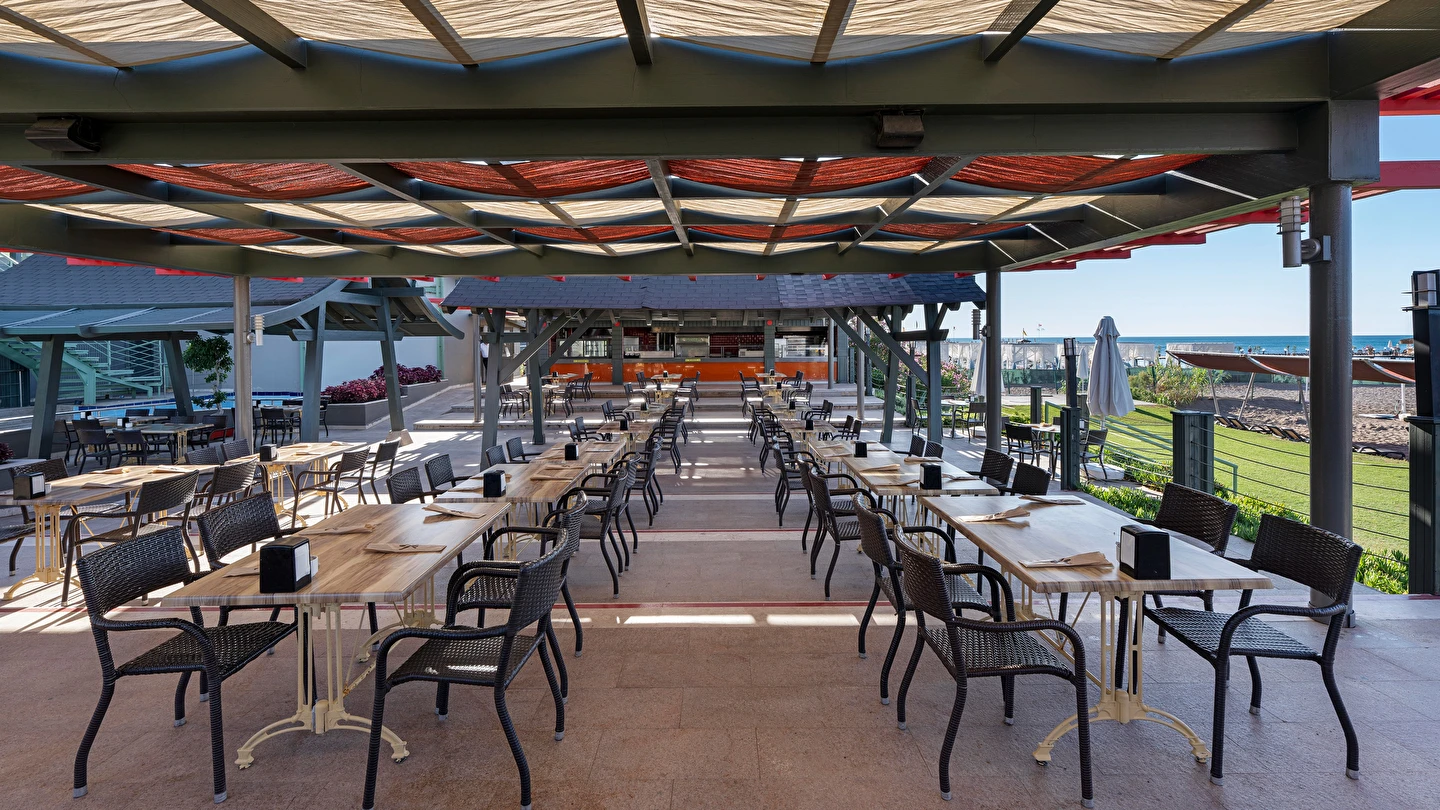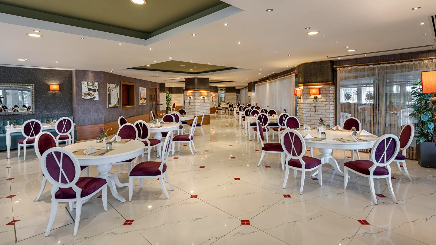 Sabah kahvaltısı, öğle ve akşam yemekleri açık büfe olup tesisin belirlediği markalar dahilinde yerli alkollü ve alkolsüz içecekler 24 saat ücretsizdir. Tüm şişelenmiş kutu, kapalı yerli ve yabancı içecekler, ithal içkiler, Taze sıkılmış meyve suyu, paket dondurma ücretlidir.