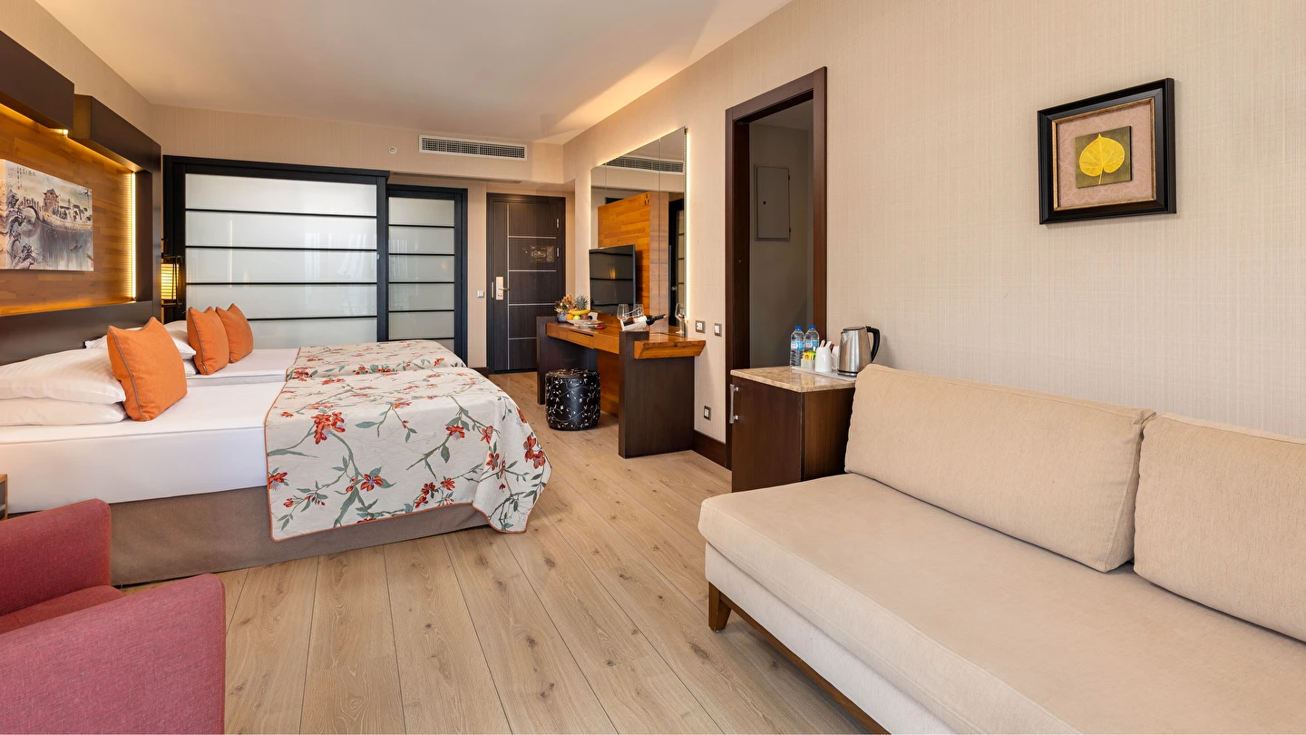 Verdiğim ücretten daha iyi hizmet aldım. Personeller çok iyilerdi ama biraz garson eksik gibiydi. Yemekler çok lezzetliydi. Oda ve temizlik çok iyiydi.