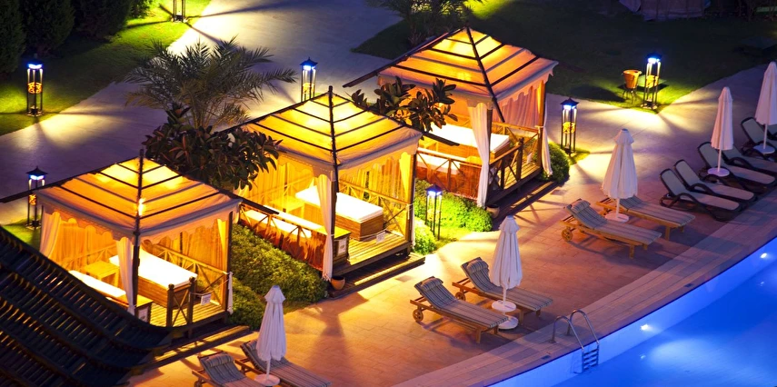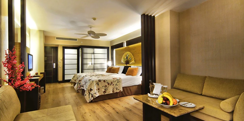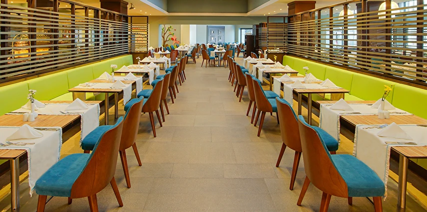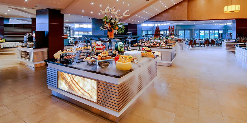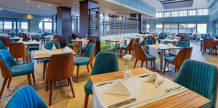 Sabah kahvaltısı, öğle ve akşam yemekleri açık büfe olup tesisin belirlediği markalar dahilinde yerli alkollü ve alkolsüz içecekler 24 saat ücretsizdir. Tüm şişelenmiş kutu, kapalı yerli ve yabancı içecekler, ithal içkiler, Taze sıkılmış meyve suyu, paket dondurma ücretlidir.