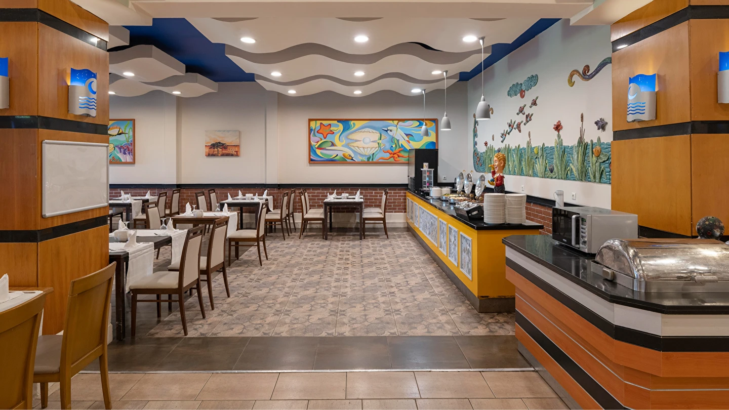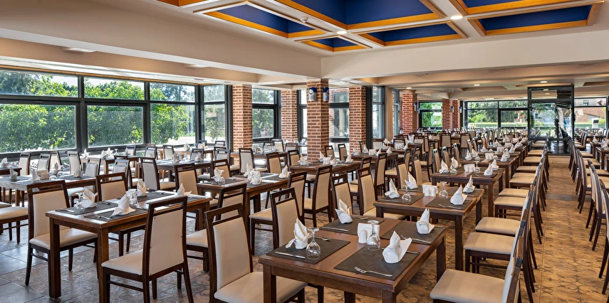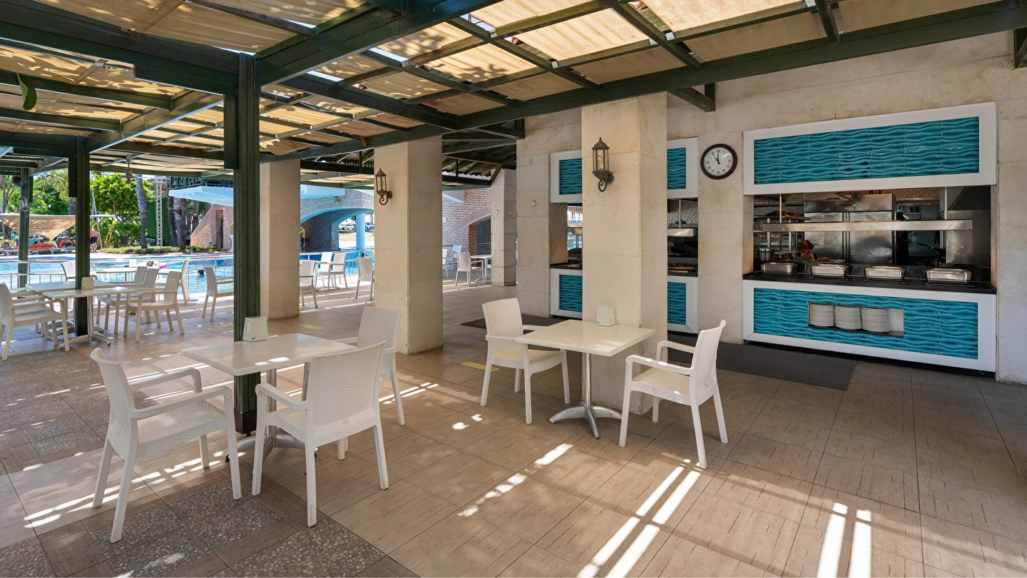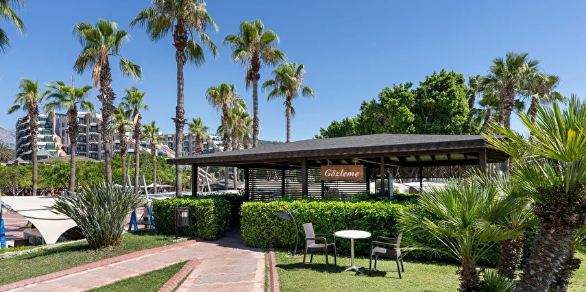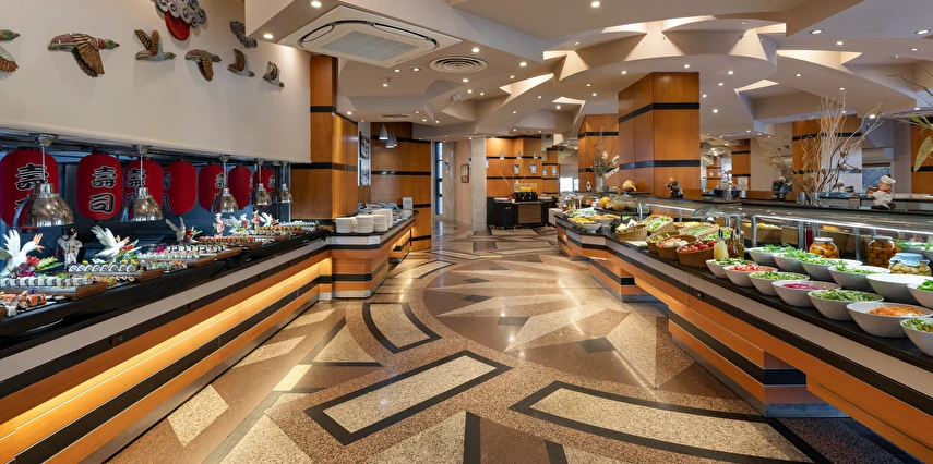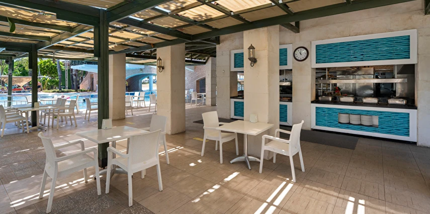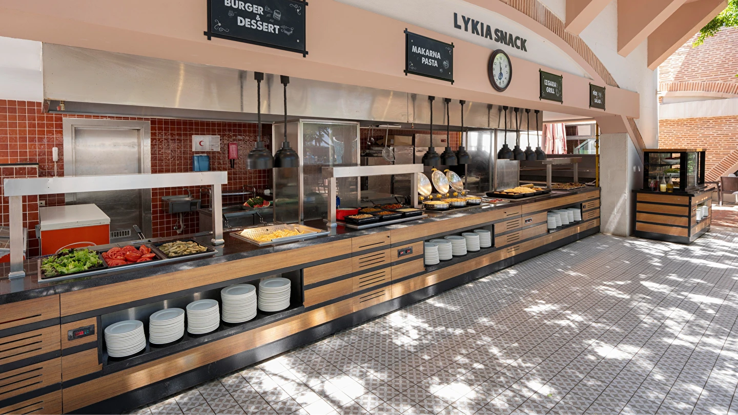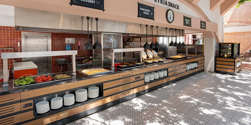 Sabah kahvaltısı, öğle ve akşam yemekleri açık büfe olup tesisin belirlediği markalar dahilinde yerli alkollü ve alkolsüz içecekler 24 saat ücretsizdir. Tüm şişelenmiş kutu ,kapalı yerli ve yabancı içecekler, ithal içkiler ,Taze sıkılmış meyve suyu ücretlidir.