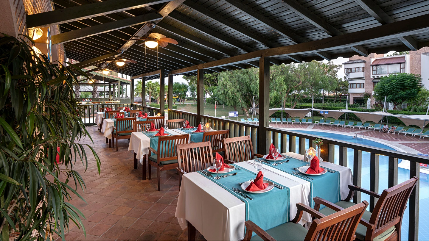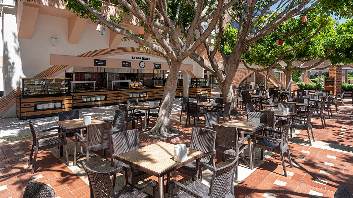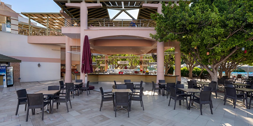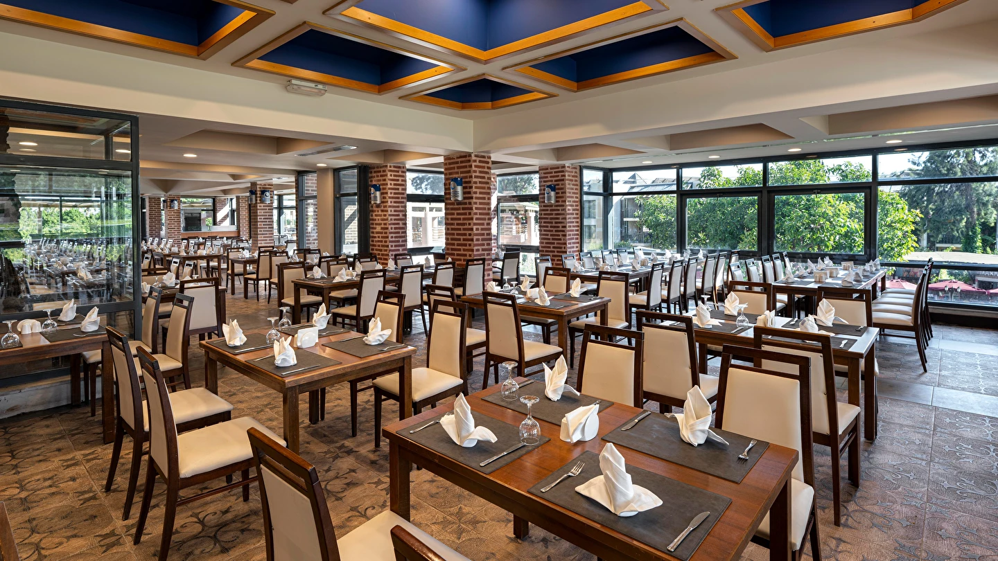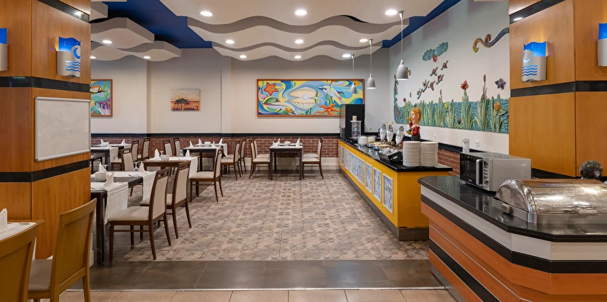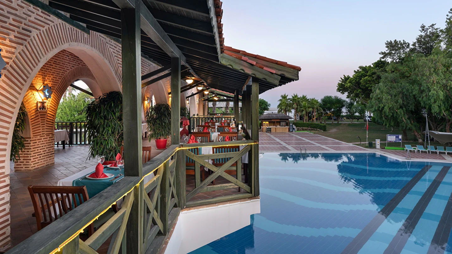 Sabah kahvaltısı, öğle ve akşam yemekleri açık büfe olup tesisin belirlediği markalar dahilinde yerli alkollü ve alkolsüz içecekler 24 saat ücretsizdir. Tüm şişelenmiş kutu ,kapalı yerli ve yabancı içecekler, ithal içkiler ,Taze sıkılmış meyve suyu ücretlidir.