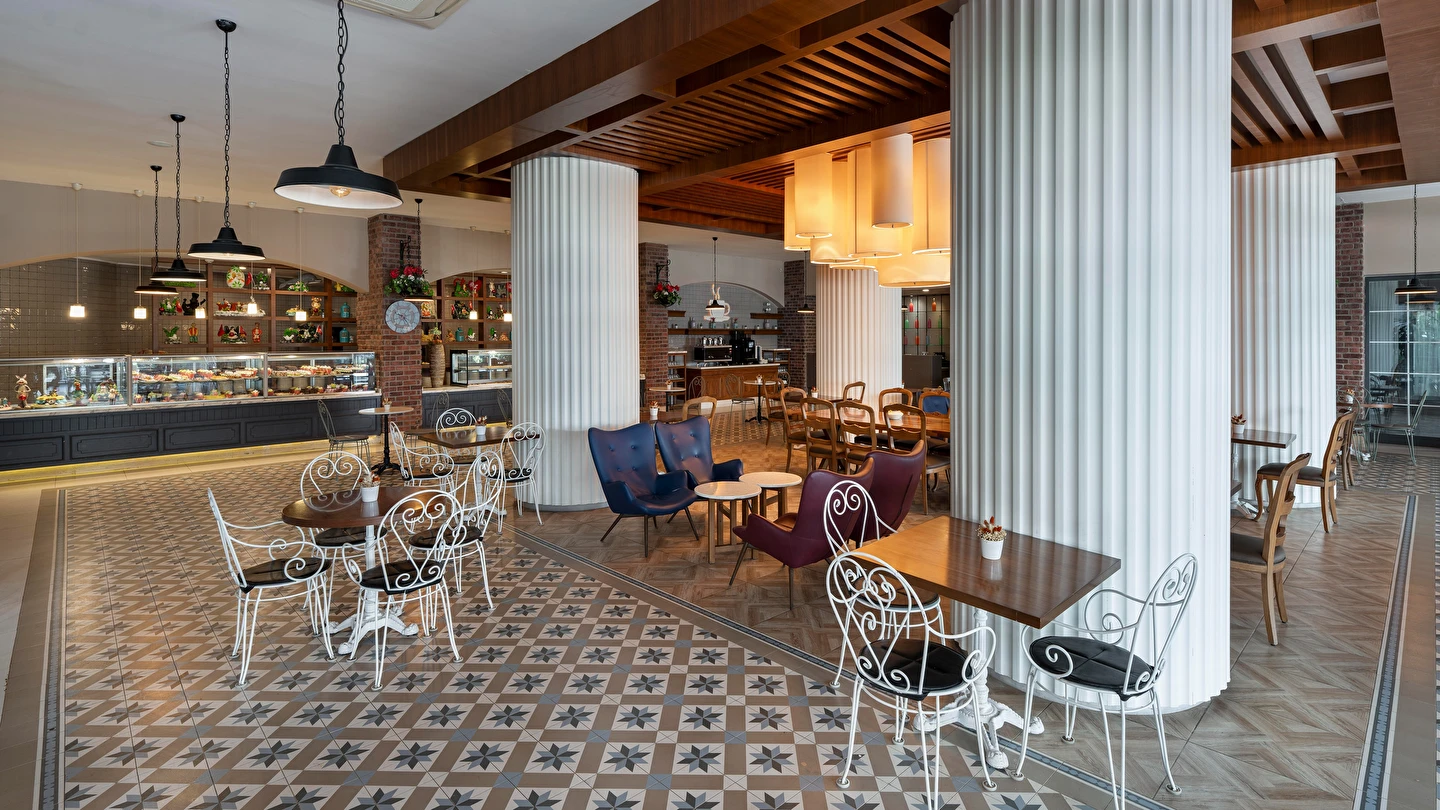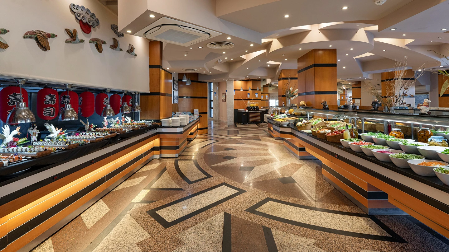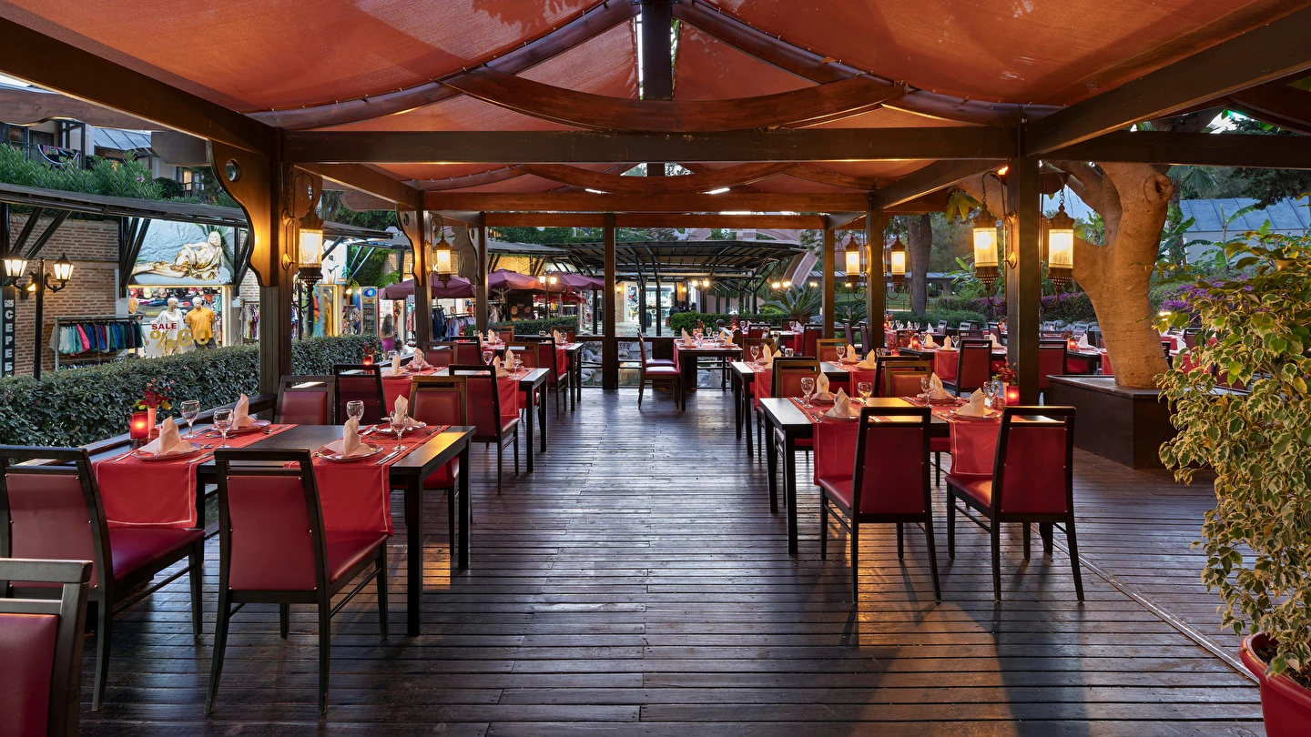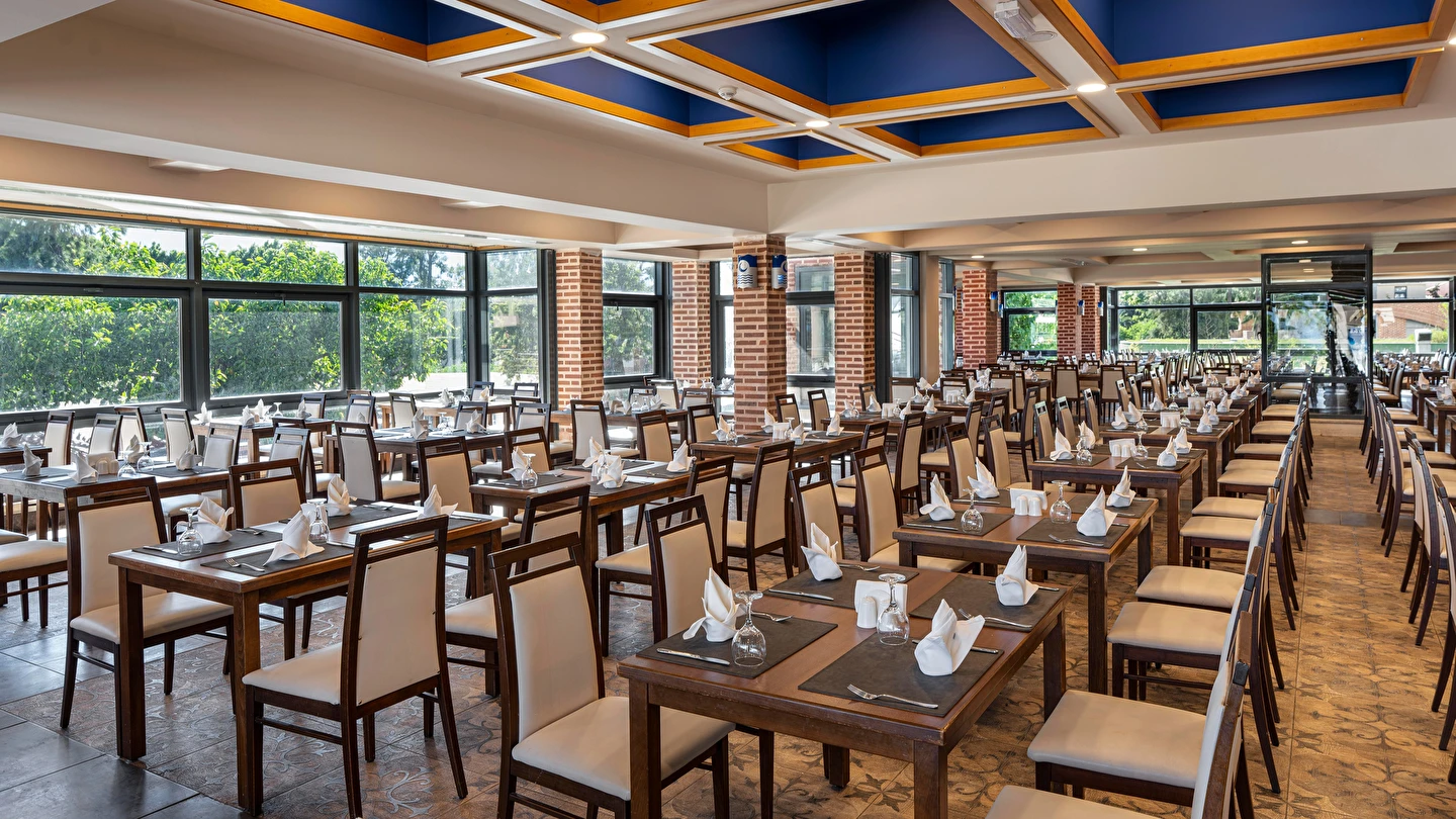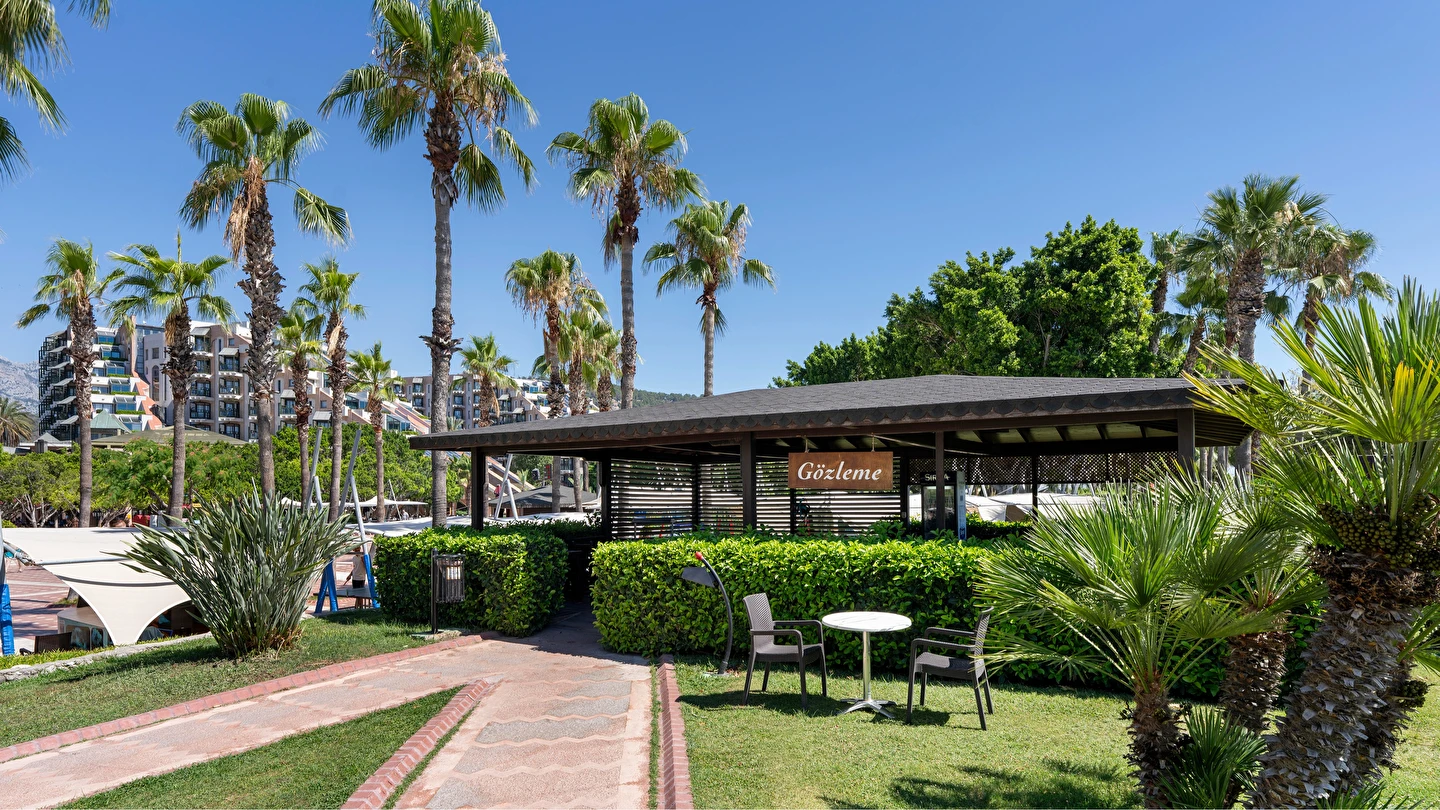 Sabah kahvaltısı, öğle ve akşam yemekleri açık büfe olup tesisin belirlediği markalar dahilinde yerli alkollü ve alkolsüz içecekler 24 saat ücretsizdir. Tüm şişelenmiş kutu ,kapalı yerli ve yabancı içecekler, ithal içkiler ,Taze sıkılmış meyve suyu ücretlidir.