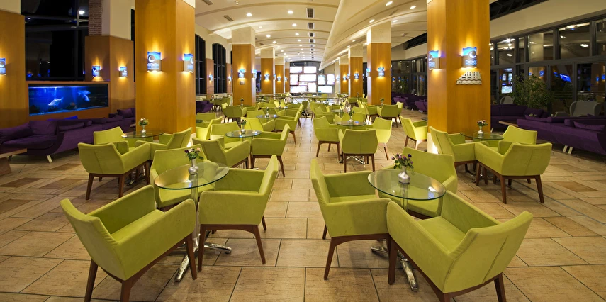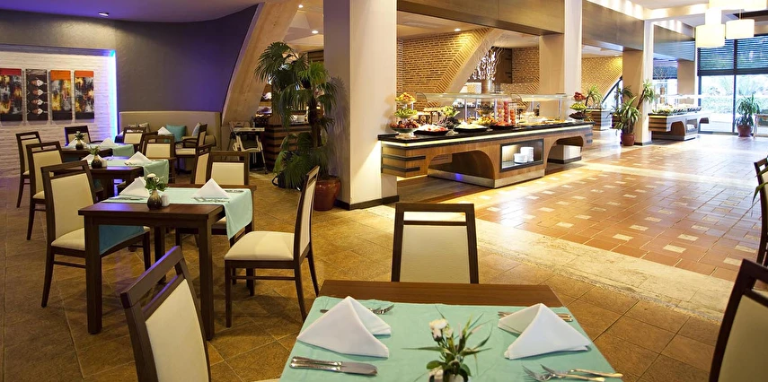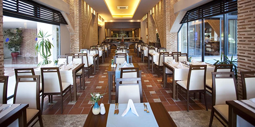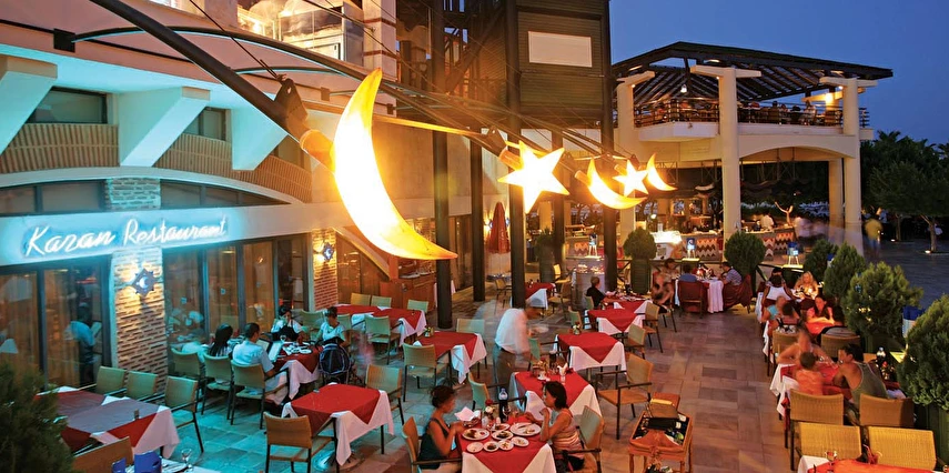 Sabah kahvaltısı, öğle ve akşam yemekleri açık büfe olup tesisin belirlediği markalar dahilinde yerli alkollü ve alkolsüz içecekler 24 saat ücretsizdir. Tüm şişelenmiş kutu ,kapalı yerli ve yabancı içecekler, ithal içkiler ,Taze sıkılmış meyve suyu ücretlidir.