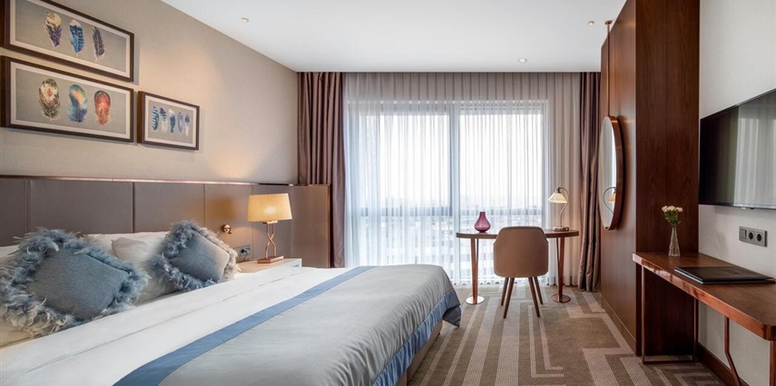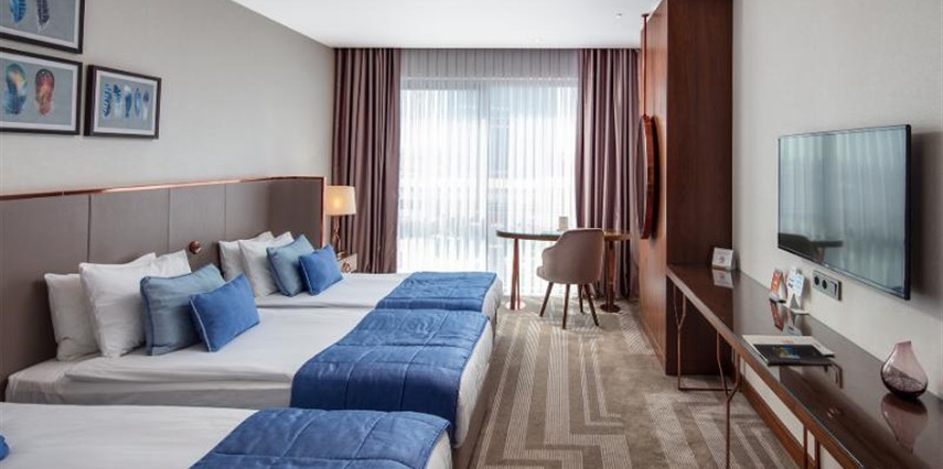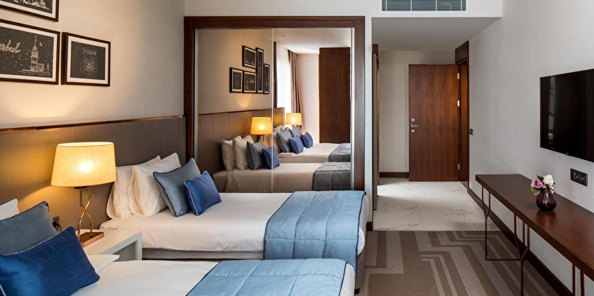 Güler yüzlü ekibimiz, kişiye özel hizmet anlayışıyla her an yanınızda olup, iş seyahati veya tatil fark etmeksizin unutulmaz bir konaklama deneyimi sunar. Otelimiz, merkezi konumu sayesinde İstanbul’un önemli iş ve turistik noktalarına kolay ulaşım imkânı sağlıyor. Modern ve konforlu odalarımız, zengin açık büfe kahvaltı seçenekleri, 7/24 resepsiyon ve concierge hizmeti, toplantı ve etkinlikler için tam donanımlı salonlarımız ve merkezi konum avantajımız ile misafirlerimize hem iş hem de tatil amaçlı konaklamalarda üstün bir deneyim sunuyoruz.