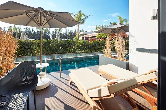 - Ana bina ile plaj arasında 300 m mesafe bulunuyor. Tesiste saat 09.00 ile 00.00 arasında devamlı olarak golf aracı ile shuttle servisi yapılıyor.