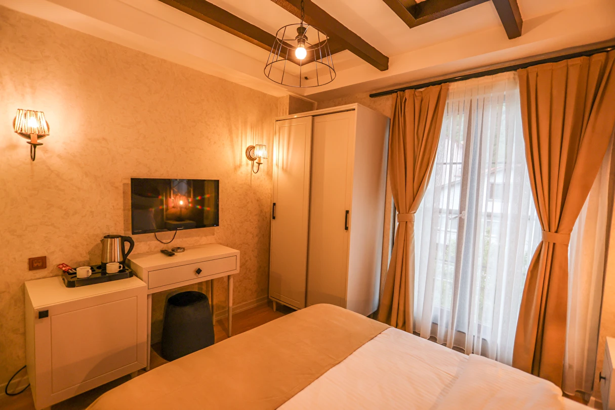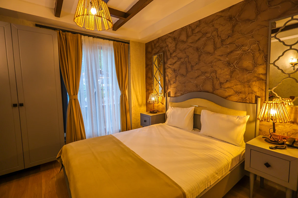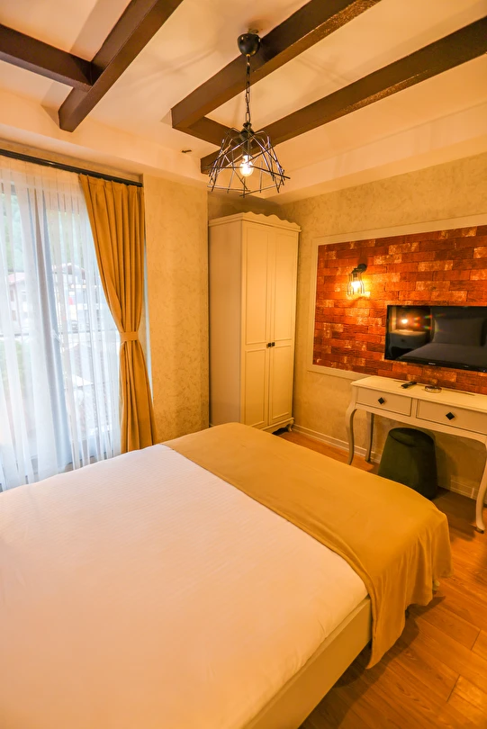 Daha Fazla GösterTesis, Sapanca Gölü'ne 5 km mesafede, hem şehir merkezine yakın hem de doğa ile iç içe olmasıyla misafirlerine konforlu bir tatil fırsatı sunuyor. Tesis, Sakarya merkeze 20 km, Sapanca Tabiat Parkı'na ise 9 km ,Teleferiğe ise çok yakın yürüme mesafede konumlanıyor. Tesisin belirlemiş olduğu kurallar doğrultusunda; çift olarak yapılacak konaklamalarda evlilik cüzdanı ibrazı gerekiyor.