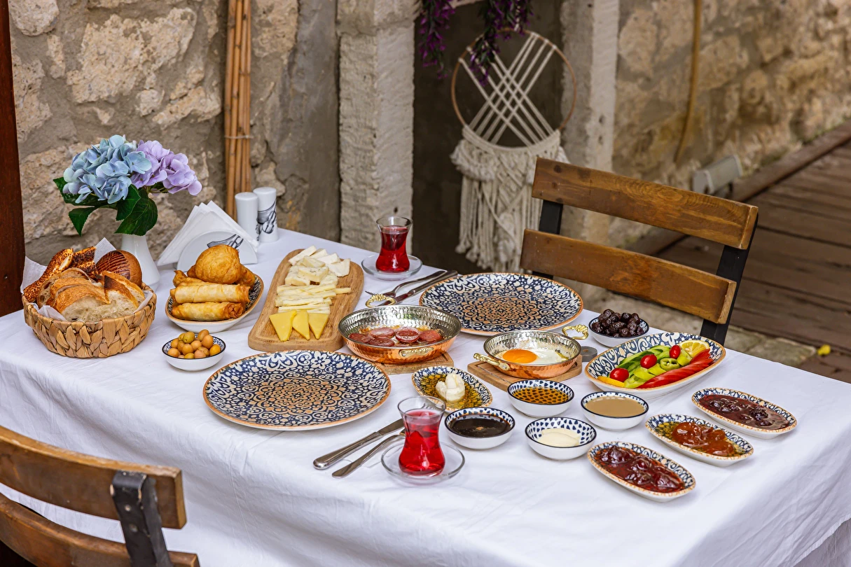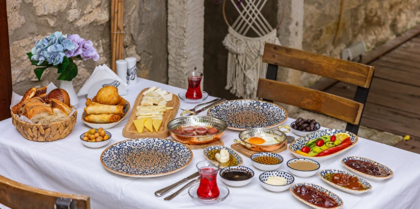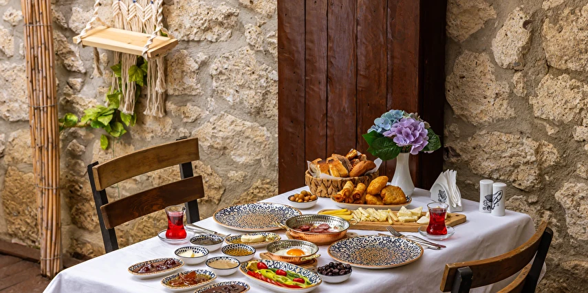 Livan Hotel Deluxe kahvaltı, her sabah 08.30’dan 11.30’a kadar sürüyor. Açık büfe olarak verilen bu kahvaltı, yöresel lezzetleri içeriyor. Öğle ve akşam yemekleri, sokakta yer alan açık havadaki masalarda alakart olarak servis ediliyor. Yürüme mesafesinde bulunan yöresel restoranları da denemeniz mümkün.