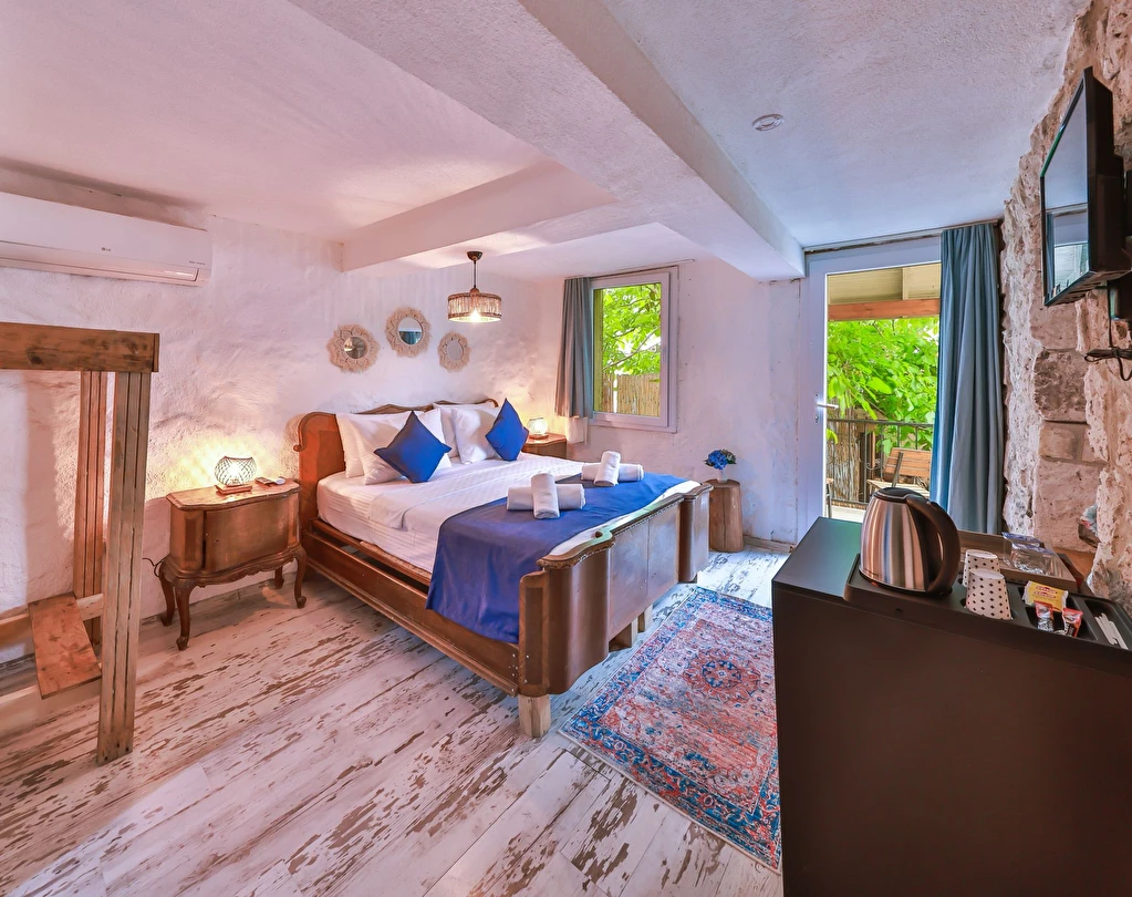 Bahsi geçen tesis, 12 odasıyla her mevsim konuklarını ağırlıyor. Konaklama seçenekleri, farklı bütçelere hitap ediyor. Deluxe, süit, double ekonomi, twin ekonomi ve promosyon aile odası olarak sıralanan seçenekler sayesinde kendinize uygun olan odayı bulmanız son derece kolay. Tüm odalarda ücretsiz kablosuz internet, düz ekran TV, elektrikli su ısıtıcı, minibar, klima ve banyo bulunuyor.