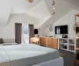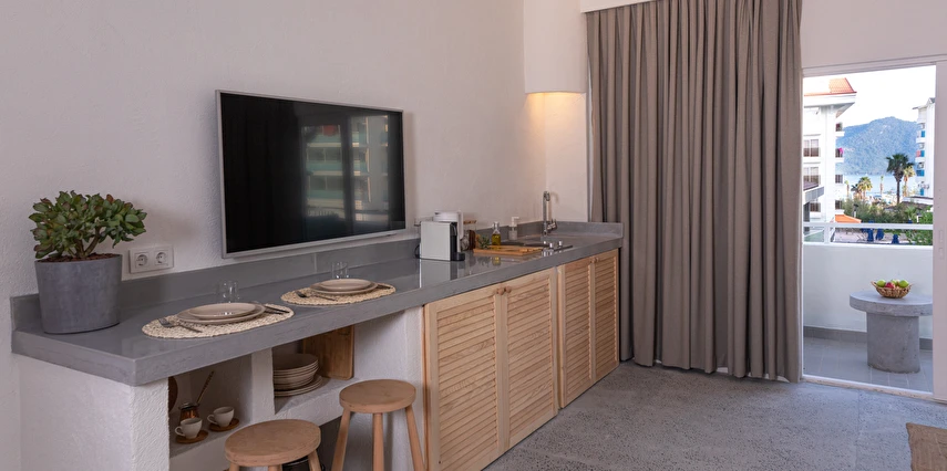 Her daire, modern yaşamın tüm ihtiyaçlarını karşılayacak şekilde donatılmıştır; klima, TV, mutfak ve banyo olanakları misafirlerin konforunu artırırken, geniş yaşam alanları da rahat bir konaklama imkânı sunar. Ferah balkonlar ve pencereler sayesinde doğal ışık alan odalar, gün boyu aydınlık ve keyifli bir ortam sağlar.