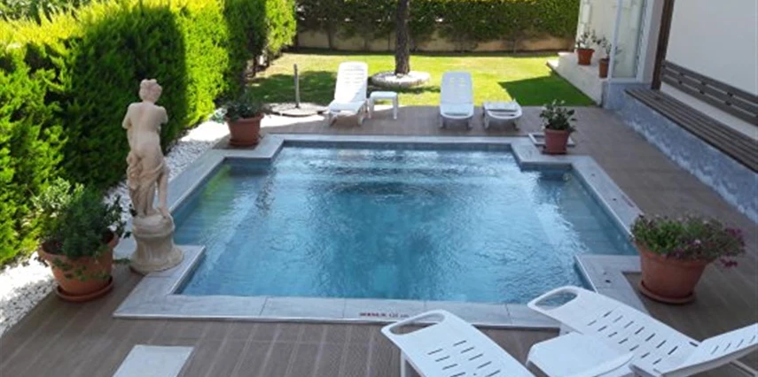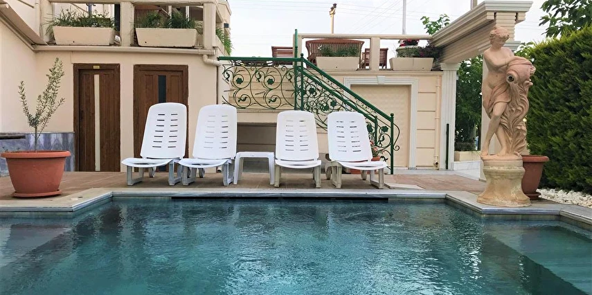 Açık yüzme havuzu, çocuk havuzu ve jakuzili havuz bulunan peyzaj düzenlemesi yapılmış bahçemiz tatil keyfiniz için idealdir.