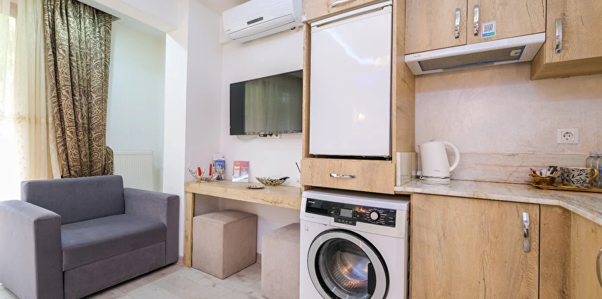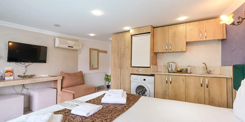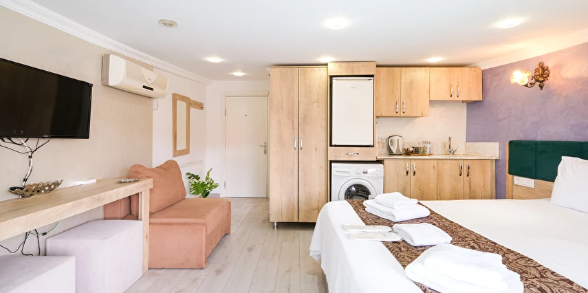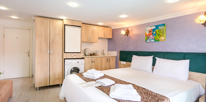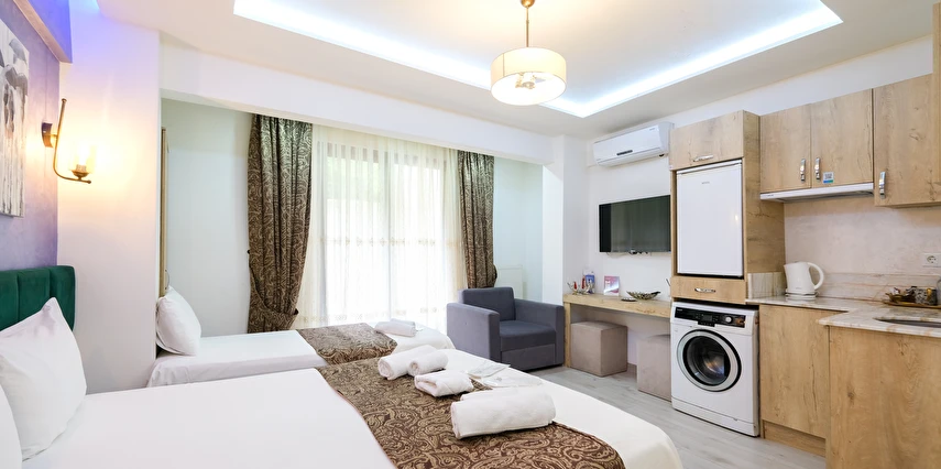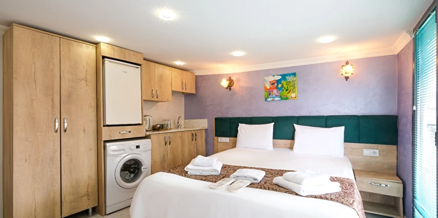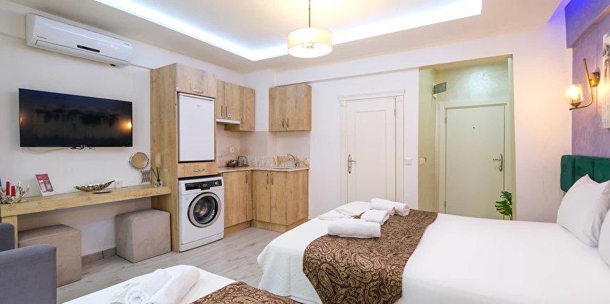 Odanızda (tüm oda tiplerimiz için); klima, lcd televizyon, çamaşır makinası, elektrikli su ısıtıcı, porselen bardaklar, çay, kahve ve su ikramlarımız, mutfak tezgahı, mutfak dolapları ve lavabosu mevcuttur. Misafirlerimizin iyi vakit geçirebilmesi için dijital TV kanalları vardır. Banyolarda duş kabini, hijyenik tavan duş başlığı, ücretsiz banyo/kozmetik ürünleri ve saç kurutma makinesi vardır. Odalarımız talebinize istinaden günlük olarak temizlenebilir. Transfer servisleri anlaşmalı firmalarımız aracılığıyla hizmetinizdedir. İstanbul'un en nezih ve hareketli semtlerinden biri olan Ortaköy'ün merkezinde, sahile yürüyerek üç dakika mesafede, meşhur kahvaltıcılar sokağının iki arka sokağındayız. Çevremizde meşhur Ortaköy Cami, Cafe'ler, Restaurant'lar, barlar, marketler, eczaneler, bankalar, antikacılar bulunmaktadır ve toplu taşıma kara ulaşımı tercih edecekseniz (Ortaköy sahil durağı, Portakal yokuşu durağı, Dereboyu caddesi durağı) deniz ulaşımı tercih edecekseniz Ortaköy sahil iskelesi dahil hepsi yürüyerek 10 dakikalık mesafemiz içerisindedir. Siz ev huzurunda konaklamanızın tadını çıkartın, biz seyahatinizi sizin için daha keyifli kılmak adına #Kalitenin ve #Huzurun tek adresi Loren Hotel Suites’te sizleri bekliyor olacağız…