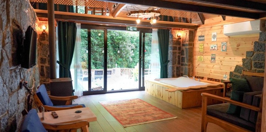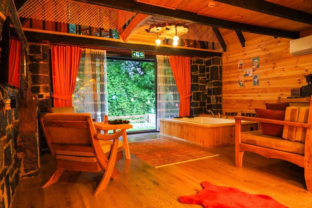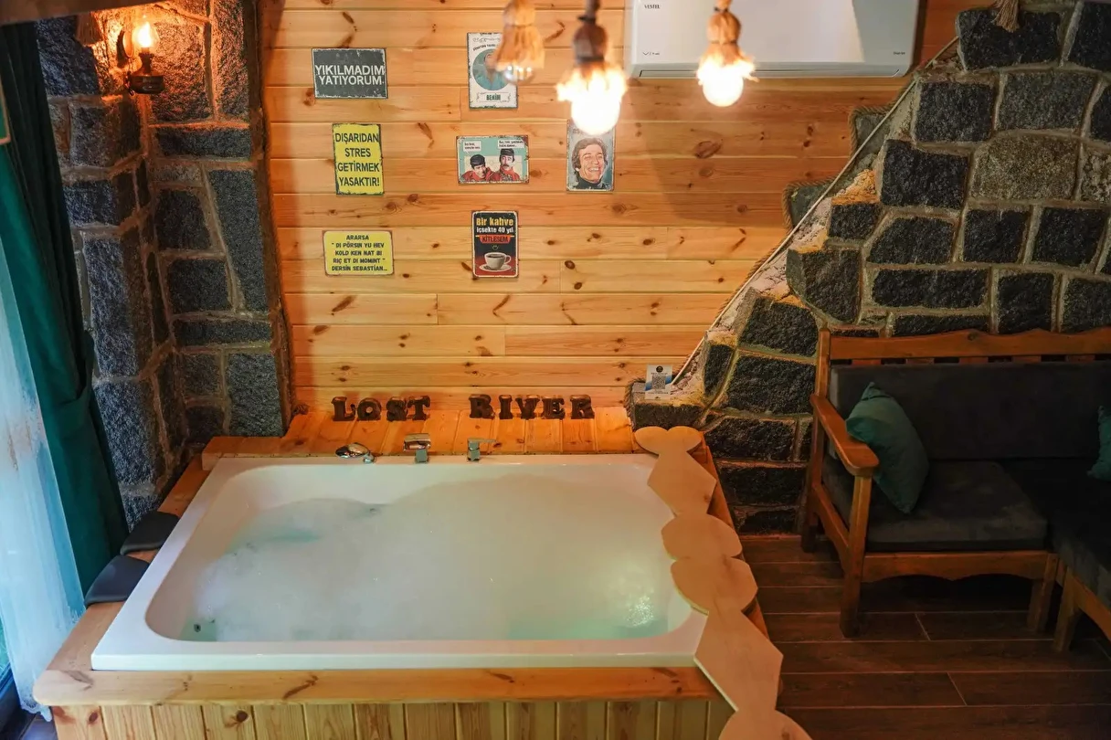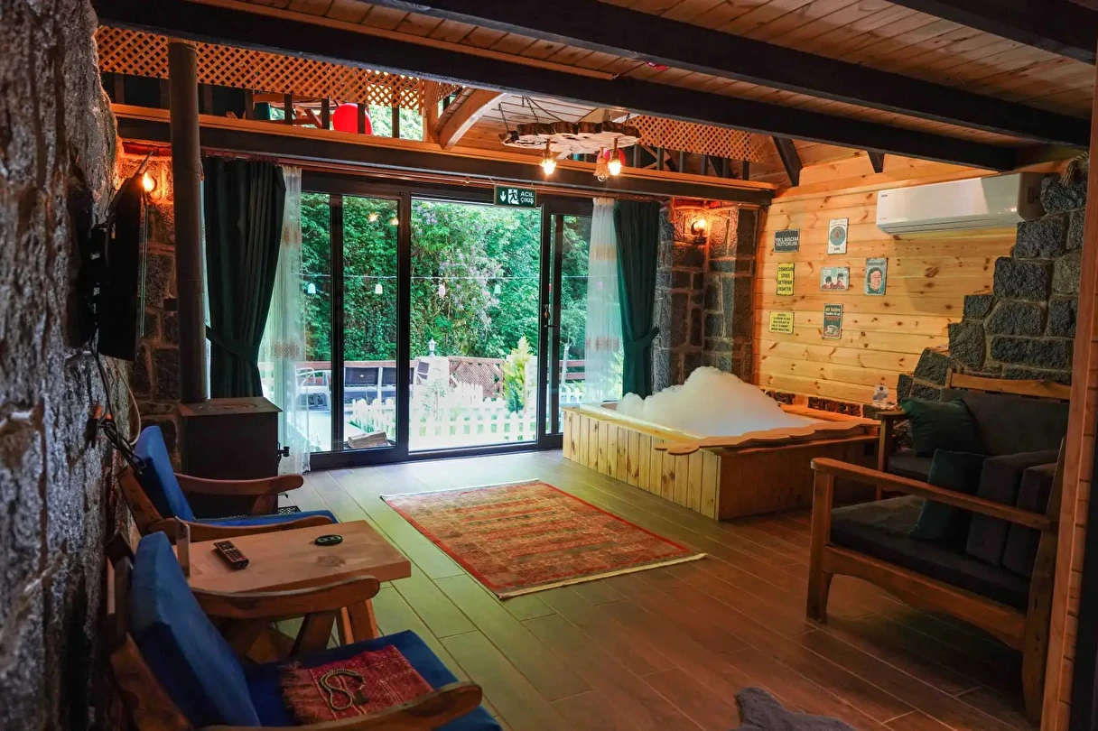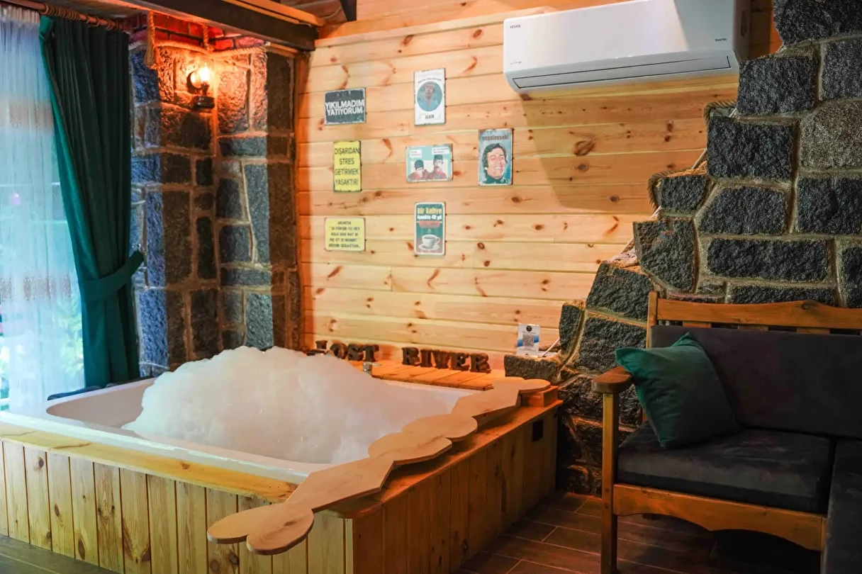 Daha Fazla GösterOrmanın derinliklerinde, dere kenarındaki bu eşsiz bungalov, sizlere unutulmaz bir tatil sizi bekliyor. Sakinlik ve Huzur: Ormanla iç içe olan tesisimizde, sadece doğanın sesini duyarsınız. Kuş cıvıltıları ve dere şırıltısı eşliğinde sabah kahvenizi yudumlayın. Dere Kenarında Eşsiz Bir Manzara: Bungalovumuz, dere kenarında ve doğal güzelliklerle çevrilidir. Rahat ve Konforlu Konaklama: Şık bir şekilde dekore edilmiş bungalovda, modern olanaklar ve sıcak bir atmosfer sizi bekliyor.