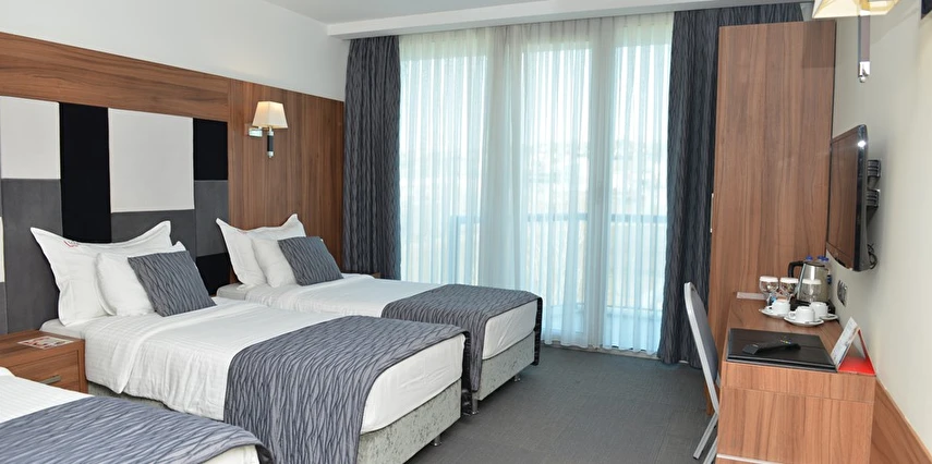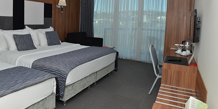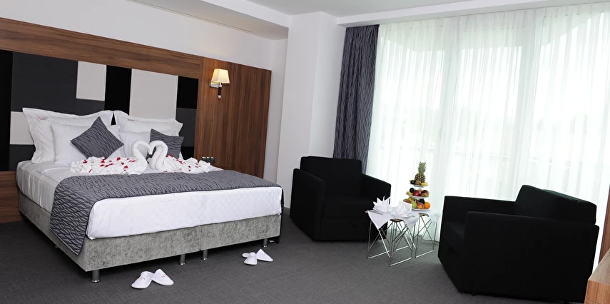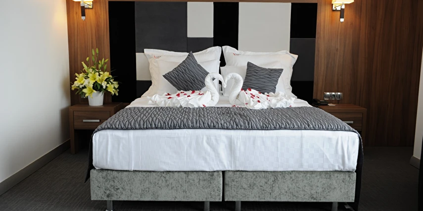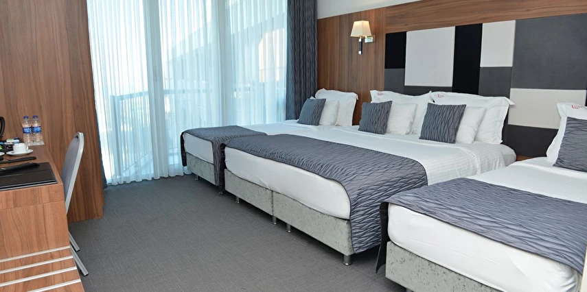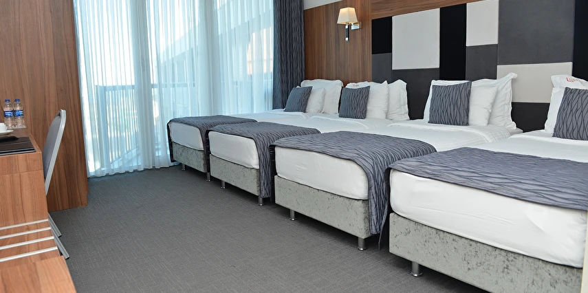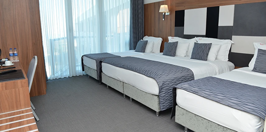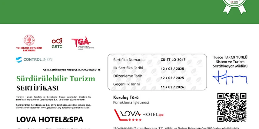 Daha Fazla GösterYalova’nın incisi, 4 yıldızlı en konforlu oteli LOVA HOTEL & SPA, turizm yolunun başlangıç lokasyonuyla, göz kamaştıran mimarisi, 1500 m2 karma ve bayanlara özel iki ayrı SPA alanı, fitness merkezi, açık havuzu, kapalı havuzları, çocuk havuzları, Türk hamamları, masaj uygulama alanları, saunalar, tuz odaları, a la carte ve bahçe restoranları, balo salonu, çok amaçlı toplantı salonu, havuz başı terası, geniş, ferah, balkonlu, teraslı doğa manzaralı 116 yataklı 58 odasıyla ve güler yüzlü hizmet anlayışıyla misafirlerinin hizmetindedir. Tesiste 3 ve 4 kişilik odalar bulunmaktadır. Tesiste 0 – 12 yaş arası iki çocuk ücretsizdir. Ayrıca tesiste 4 gece ve üzeri konaklamalarda 1 gece ücretsiz konaklama fırsatı sunulmaktadır.