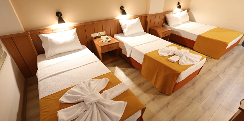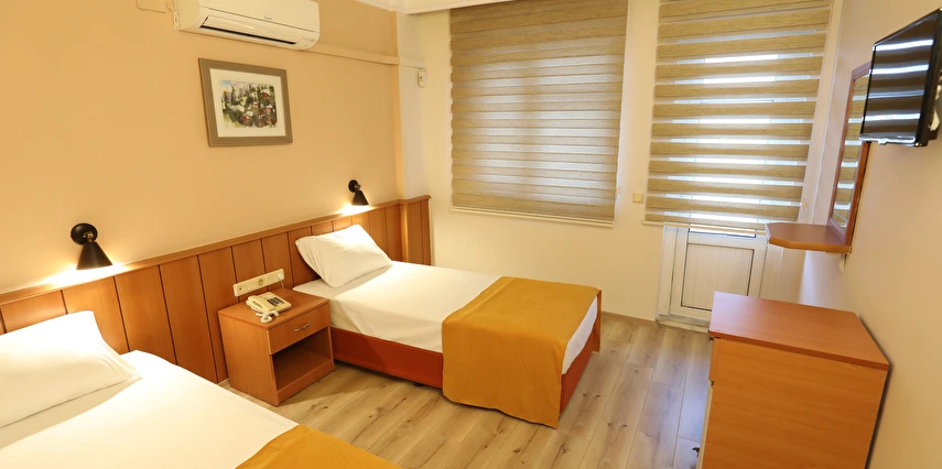 Odalarda TV, klima, minibar ve 24 saat sıcak su bulunmakta olup, tüm odalarımız balkonlu ve deniz manzaralıdır.