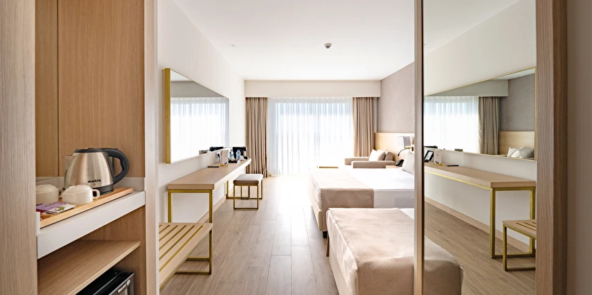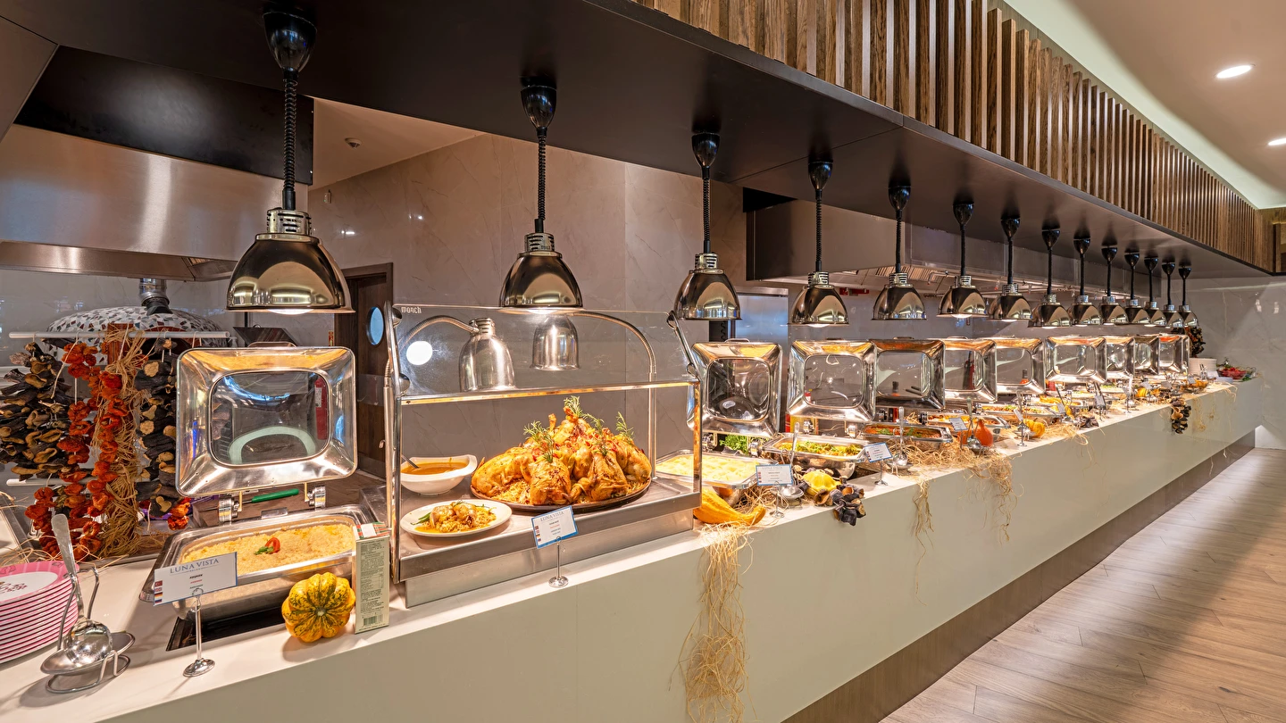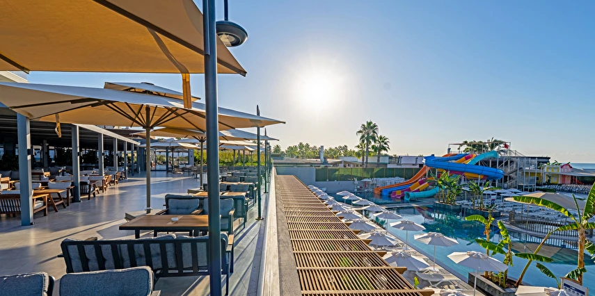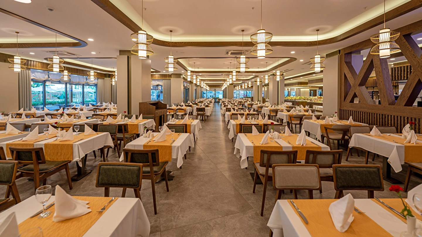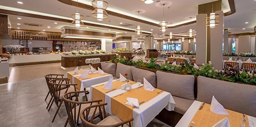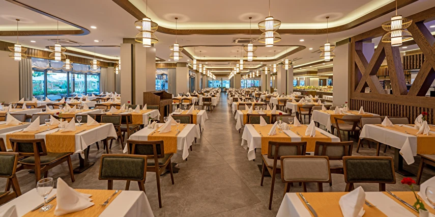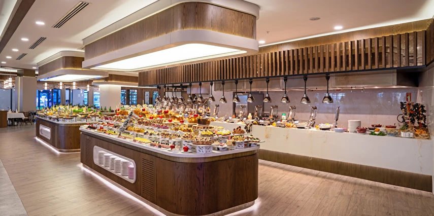 Sabah kahvaltısı, öğle yemeği ve akşam yemeği açık büfe olup, tesisin belirlemiş olduğu markalar dahilinde yerli alkollü ve alkolsüz içecekler 24 saat ücretsizdir. Konsept harici üst kalite, özel üretim içkiler ve şişe içecekler, taze sıkılmış meyve suları ücretlidir. Türk kahvesi ücretsizdir. Tüm içecekler servis personeli tarafından masaya servis edilir. (Kahvaltı hariç) .