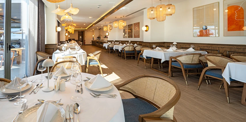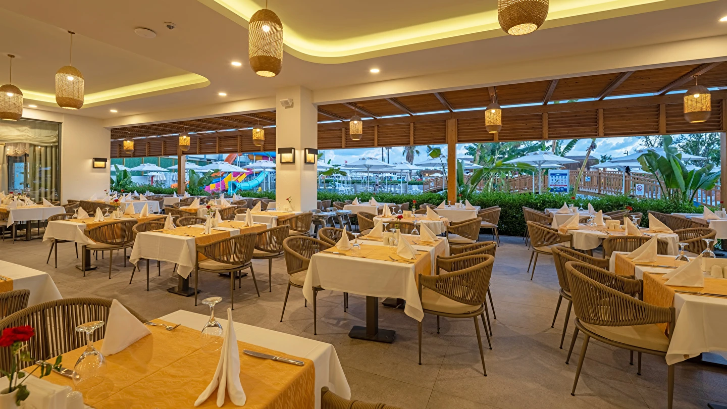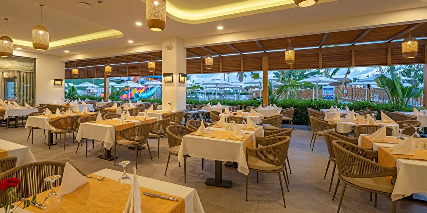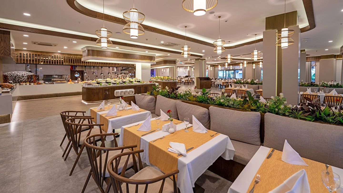 Misafirlerin en az 7 günlük konaklamalarda Balık ve Dünya Mutfağı A'La Carte restoranlardan 1 tanesini ücretsiz kullanma hakkına sahiptir. A'la Carte restoranlar belirli rezervasyon sayısına ulaşınca misafirlere hizmet verecek olup, operasyon tarih ve saatleri mevsim koşullarına göre belirlenecektir.